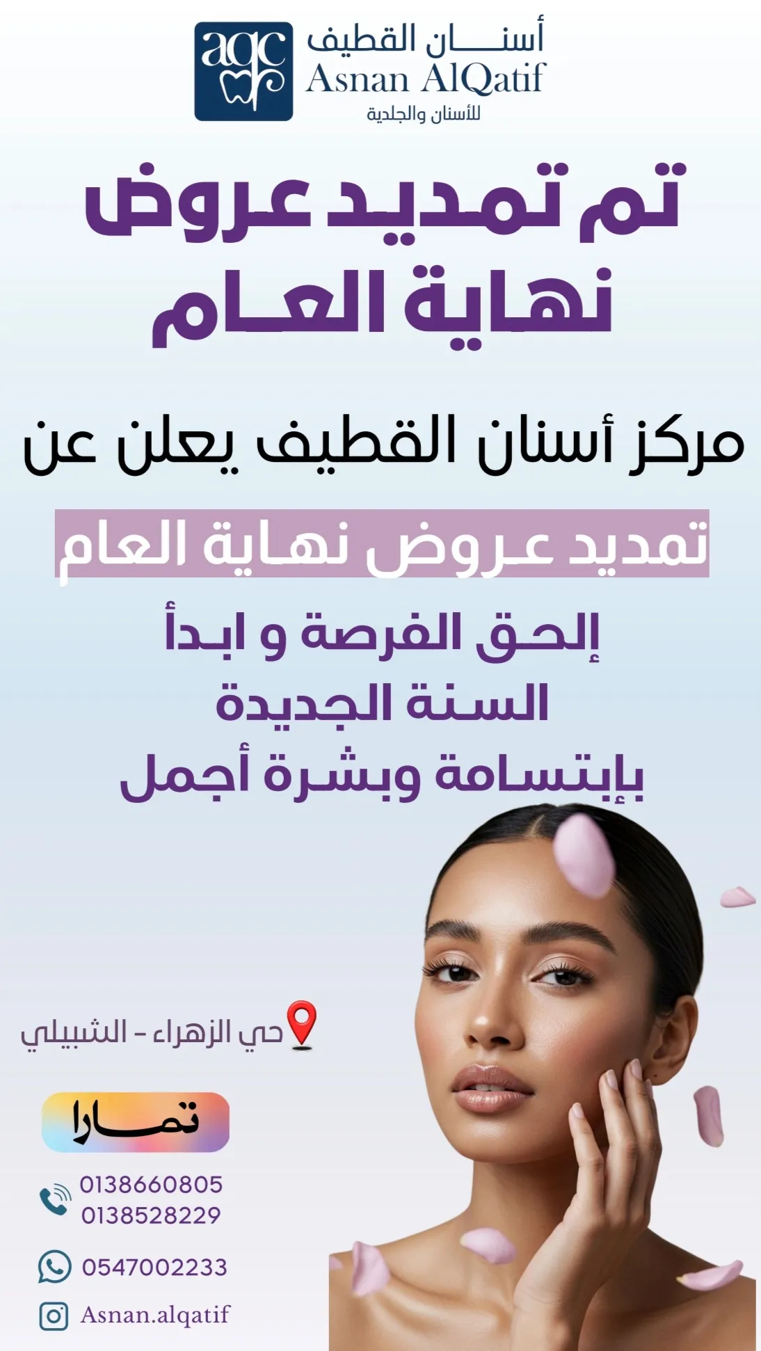 ابدأ السنة الجديدة بابتسامة مشرقة وبشرة أجمل .. تمديد عروض «مركز أسنان القطيف للأسنان والجلدية»