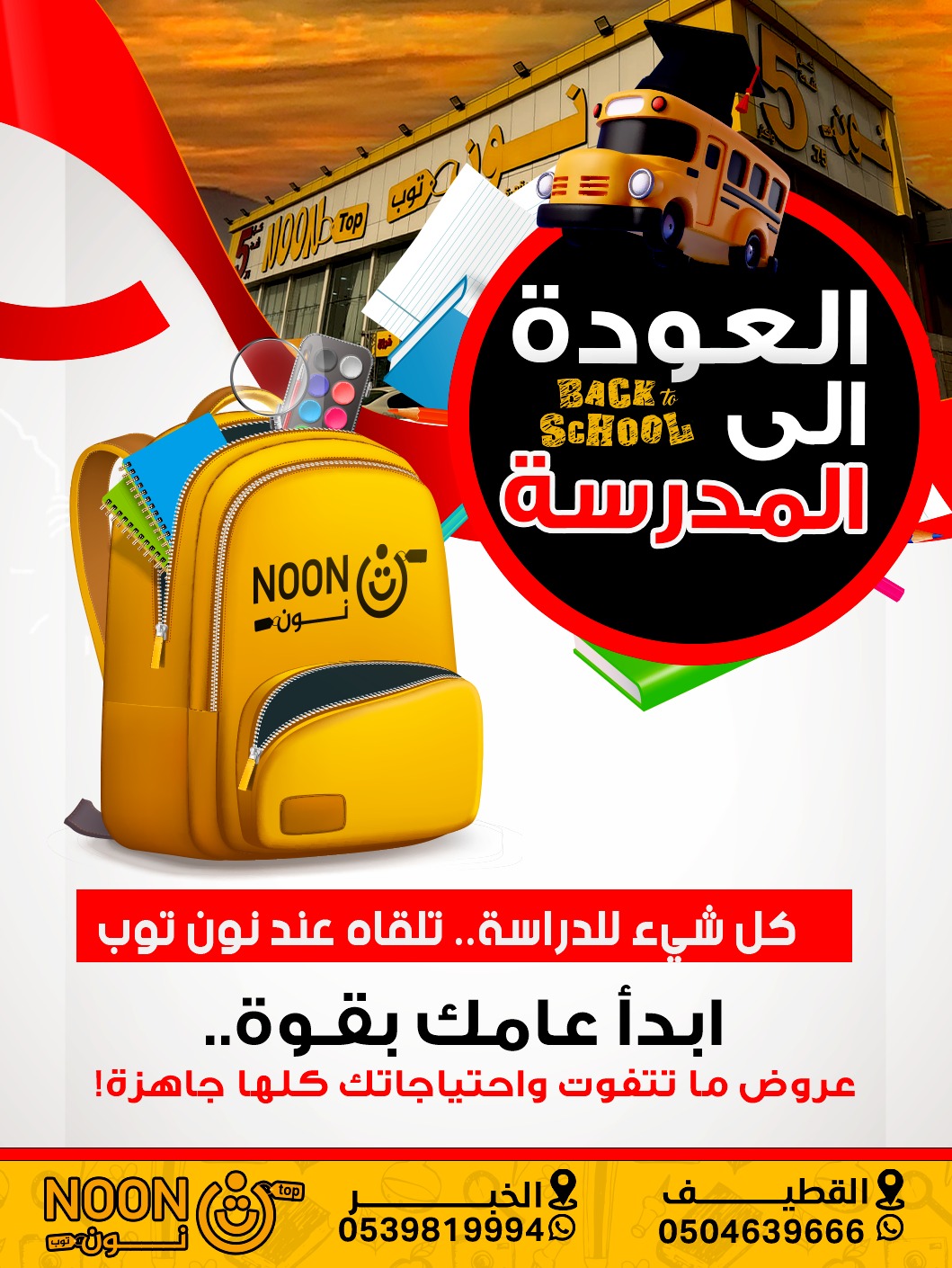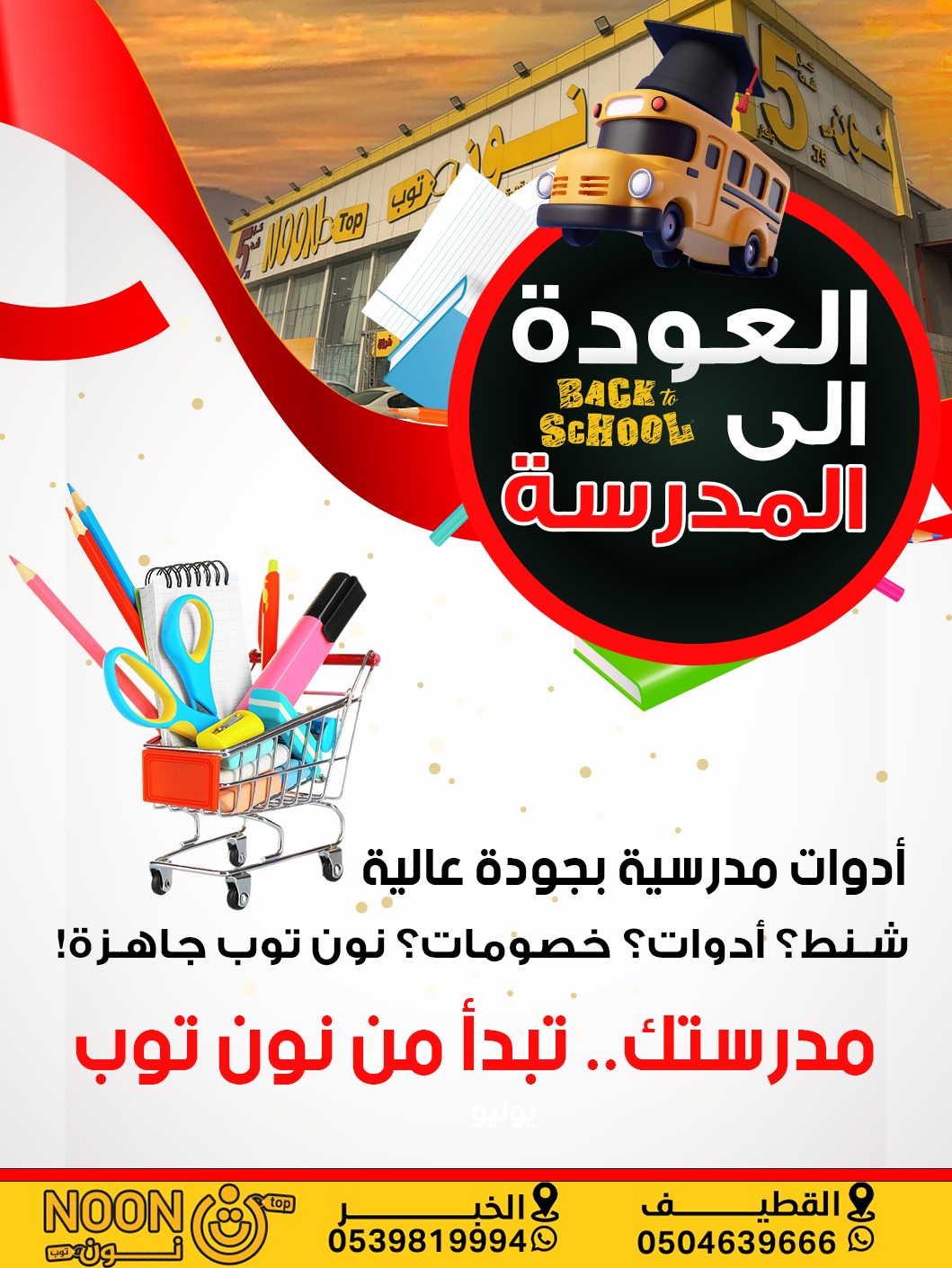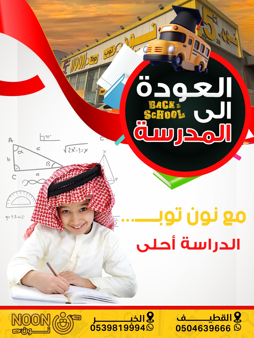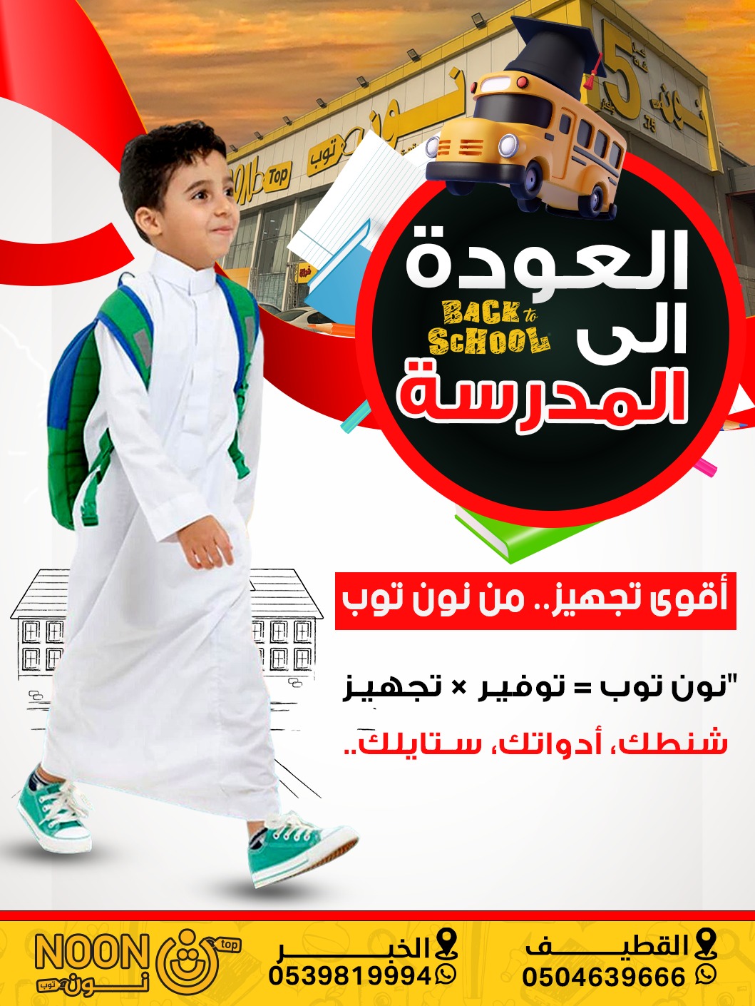 تعلن شركة نون توب عن عروضها وتخفيضاتها الكبرى بمناسبة العودة للمدارس..