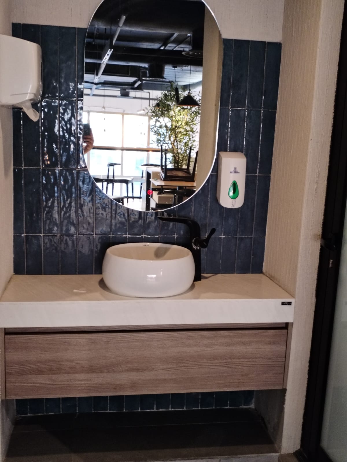 4- عدد 2 دورة مياه مجهزة بمغسلة ومرايا بطراز فخم + مغسلة مع مرايا خارجية.