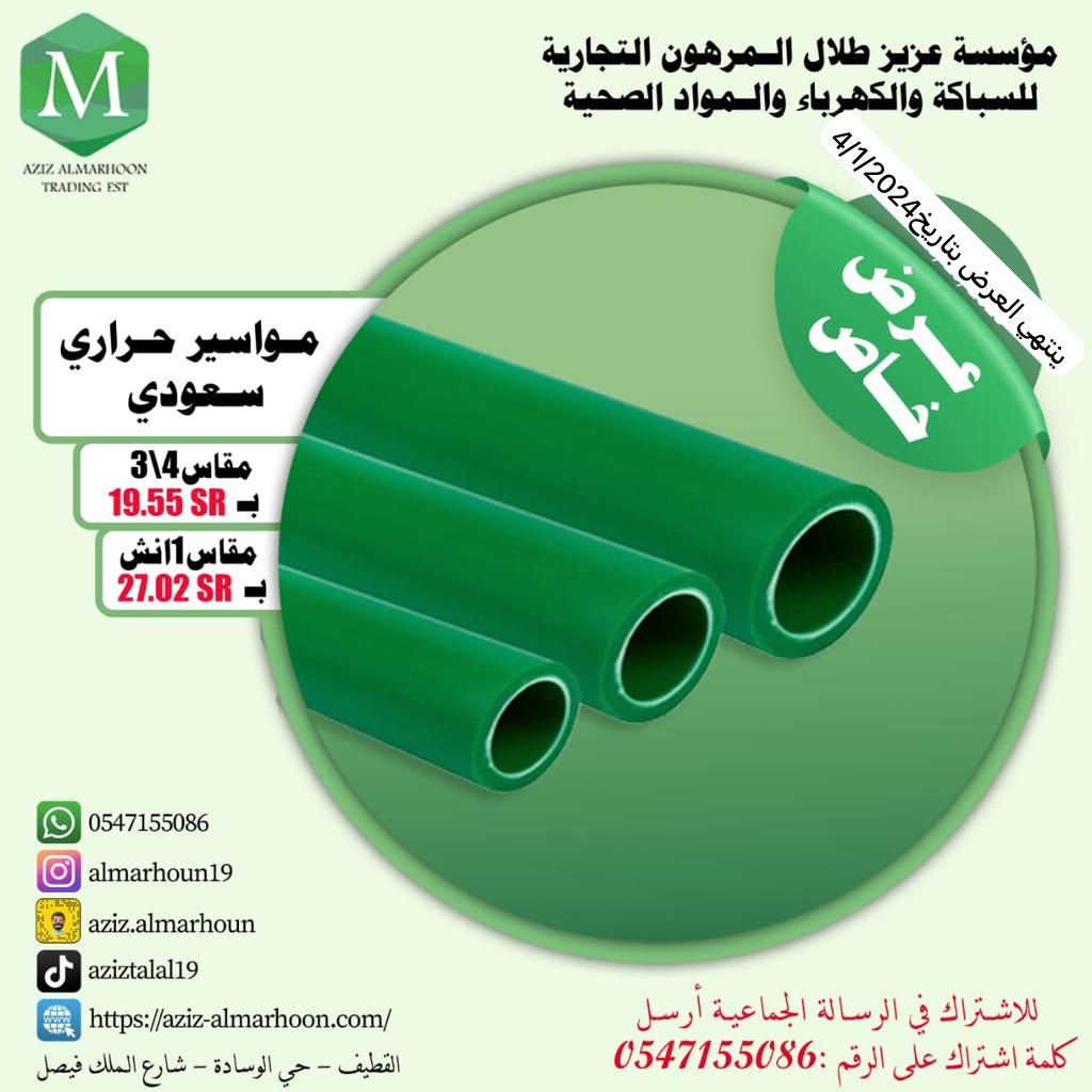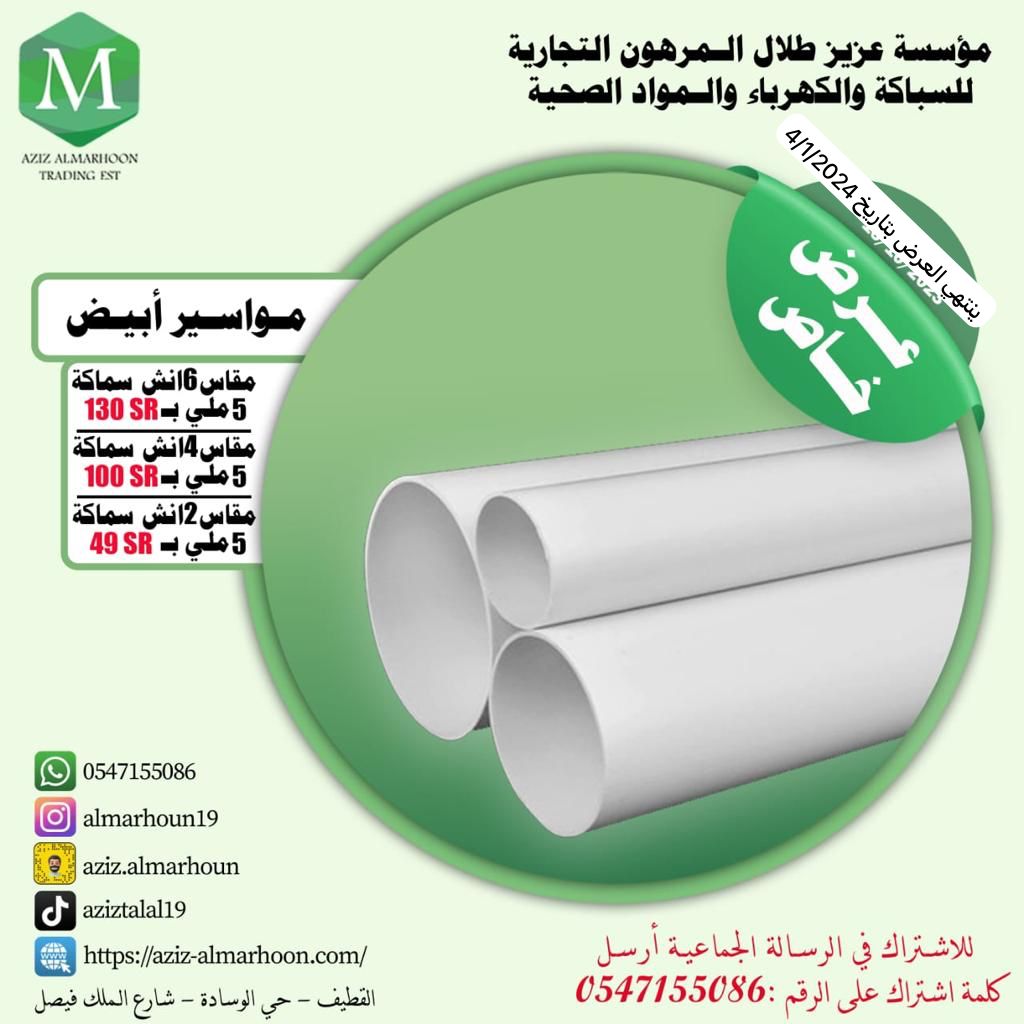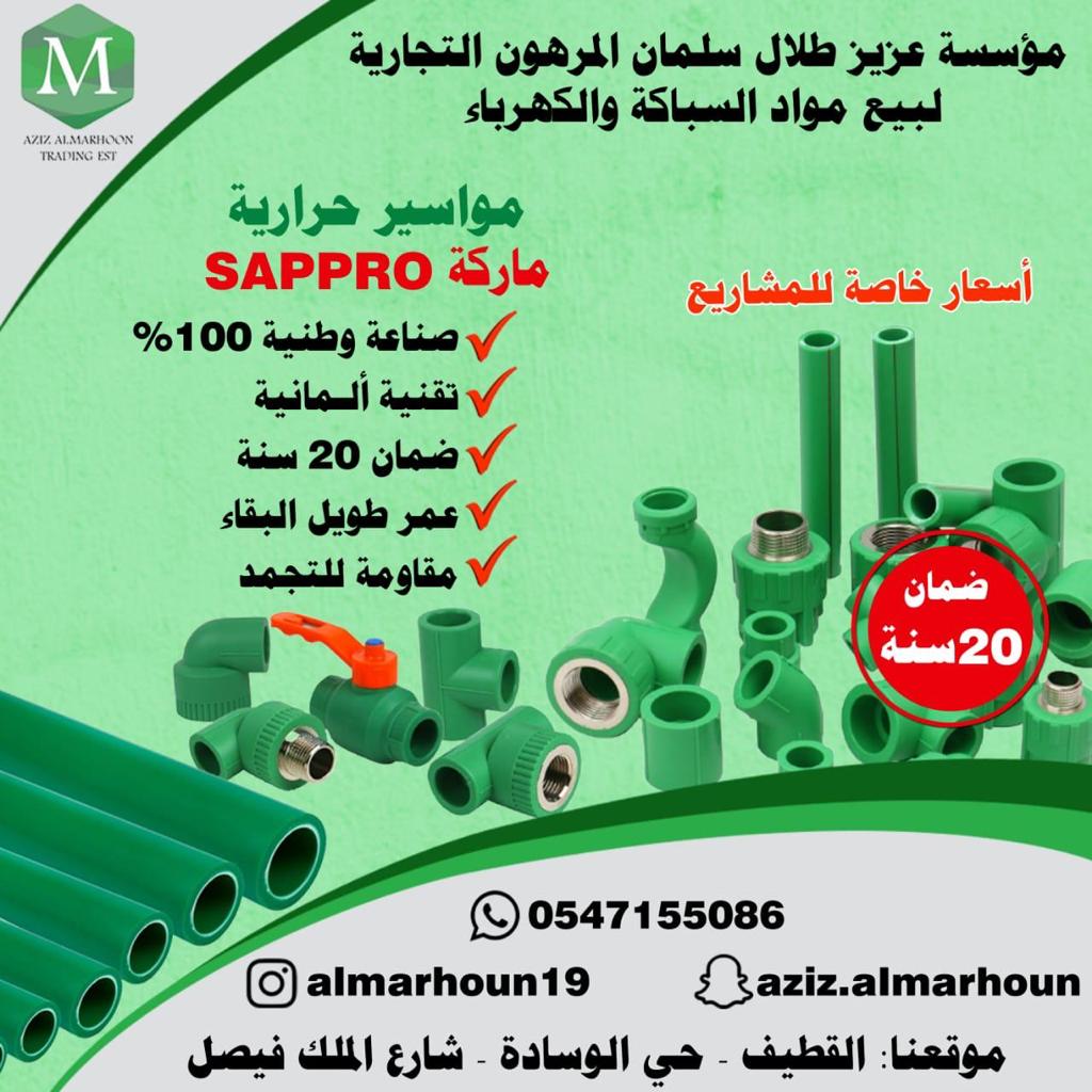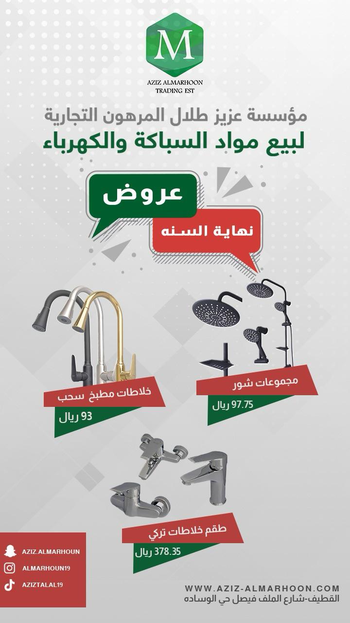 «مؤسسة عزيز طلال المرهون التجارية» لجميع أدوات السباكة والكهرباء
