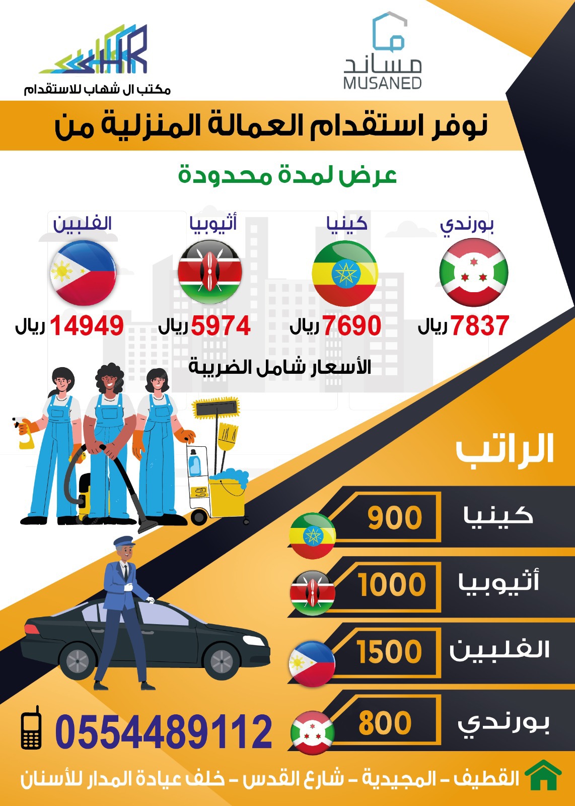 💫 مكتب آل شهاب للاستقدام يوفر لكم العمالة المنزلية :
