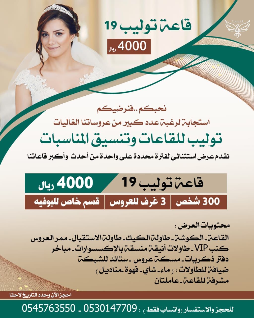 «قاعات توليب 19 للمناسبات» تقدم عرض خاص...