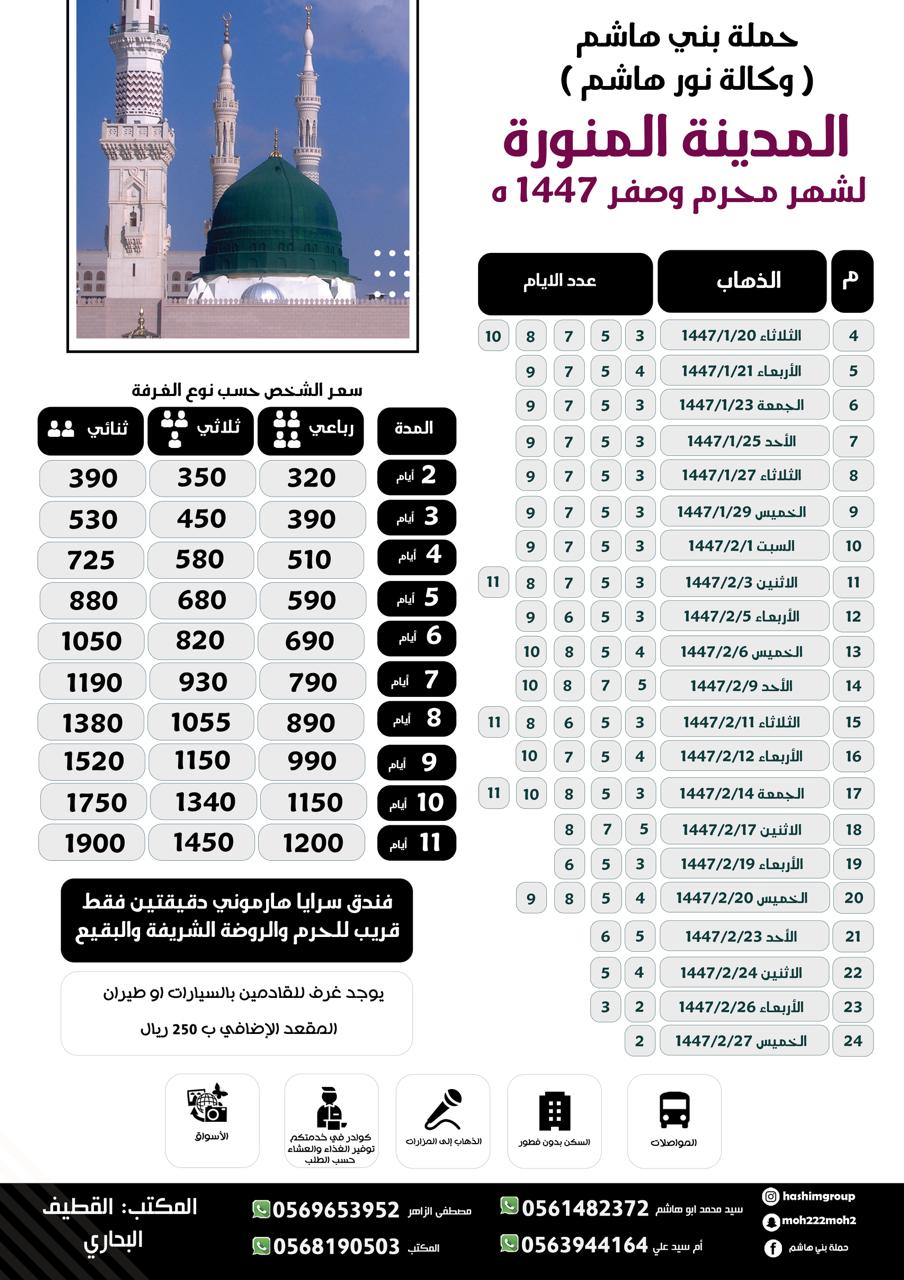 رحلات المدينة المنورة لشهر محرم وصفر 1447