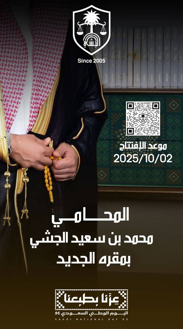 احياءاً لاكثر من عشرون عاماً من الثقة المتبادلة بيننا وبين عملائنا الكرام نجدد الثقه بنقلة نوعية في مجال المحاماه والدعم لعملائنا الكرام في افتتاح المقر الجديد للمكتب بمناسبة اكتمال عشرين عامًا على تأسيس المكتب، ونُجدد العهد مع عملائنا الكرام على مواصلة التميز في يوم ٢٠٢٥/١٠/٠٢ كخطوة متجددة في مجال المحاماة وخدمة عملائنا.