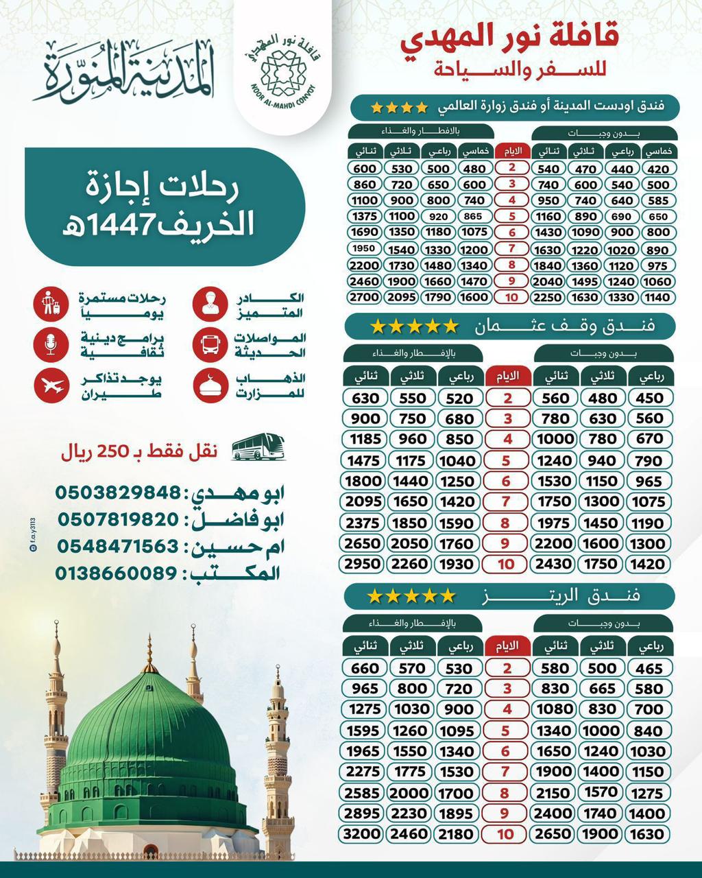 «قافلة نور المهدي» تُسير رحلاتها إلى «المدينة المنورة» في إجازة الخريف للغام 1447