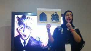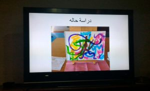 وعرضت بعض الرسوم من حالات قامت بعلاجها، مفسرةً ماذا تعني، حيث أشارت إلى بعض الرسوم المتفككة على أنها رسوم لأشخاص مصابين بالفصام وطرحت دراسة حالة، وأكدت أنه في التشخيص لايهم أن يكون للشخص إلماماً بالرسم أو لا.