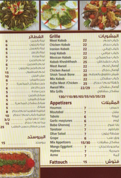 (مشويات - مقبلات - معجنات - أكلات تركية).