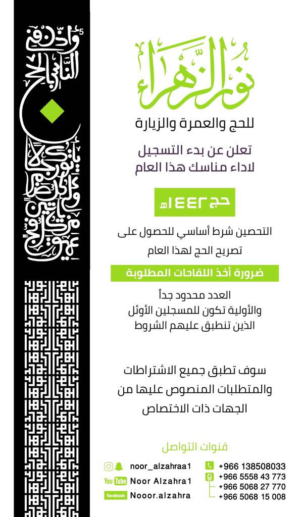 تعلن حملة نور الزهراء عن التسجيل لاداء مناسك الحج لعام ١٤٤٢