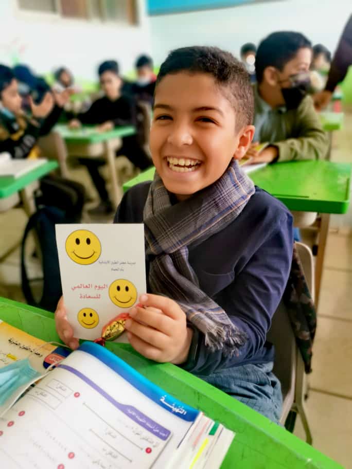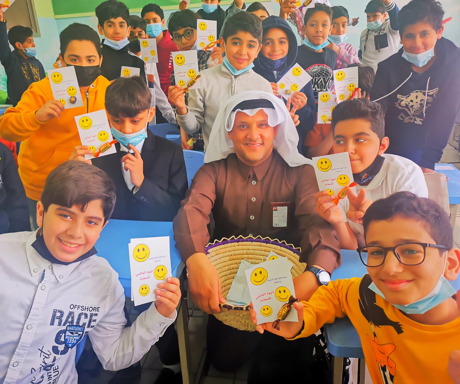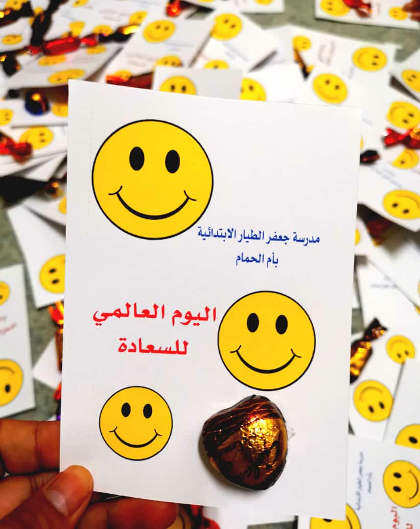 احتفلت مدرسة جعفر الطيار الابتدائية بأم الحمام باليوم العالمي للسعادة تزامنًا مع العودة الحضورية الكاملة لطلاب المدارس، والذي يصادف العشرين من شهر مارس من كل عام.
