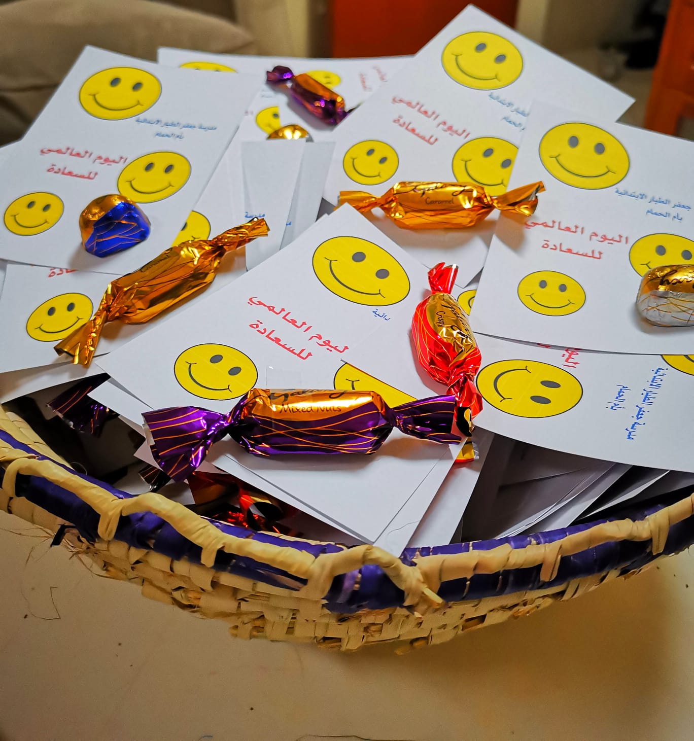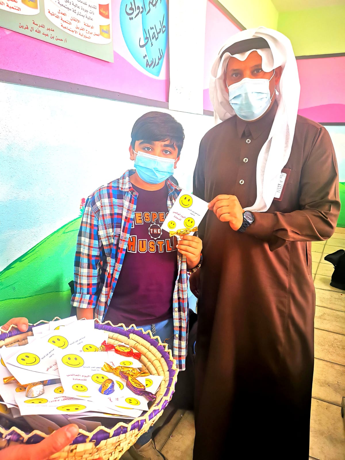 واستقبلت إدارة المدرسة والكادر التعليمي الطلاب بالورود، والرسائل الإيجابية التي تحمل رموز الابتسامة، والفرح، وقطعة من الشوكولاتة؛ وذلك لتعزيز قيمة السعادة لدى الطلاب.