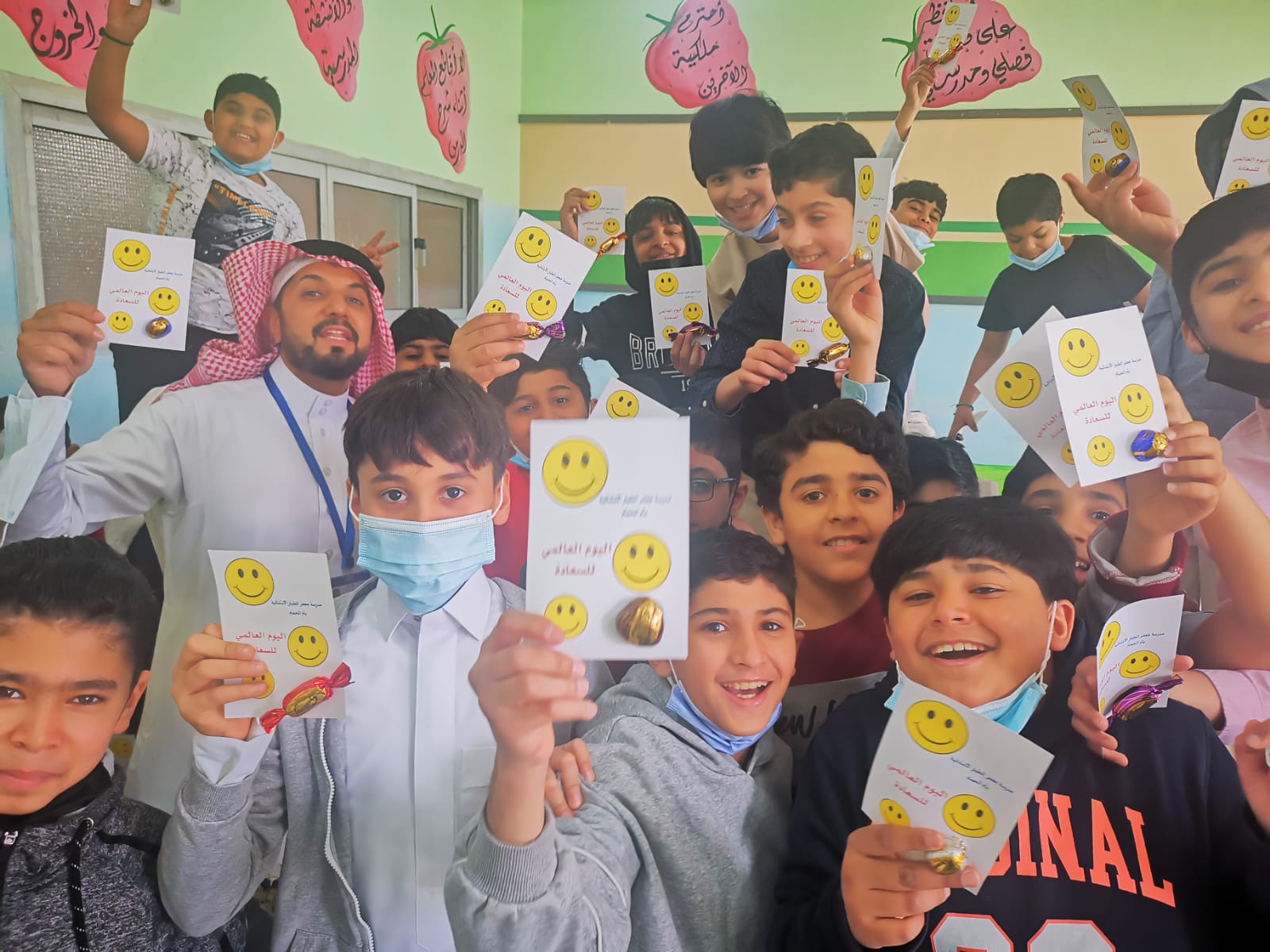 وذكر الموجه الطلابي بالمدرسة عبد الهادي الزاير أن الهدف من الاحتفال بهذا اليوم، هو تعزيز قيم الفرح، والسعادة، وترسيخها في نفوس الطلاب، وتحسين جودة الحياة وفق رؤية المملكة 2030.