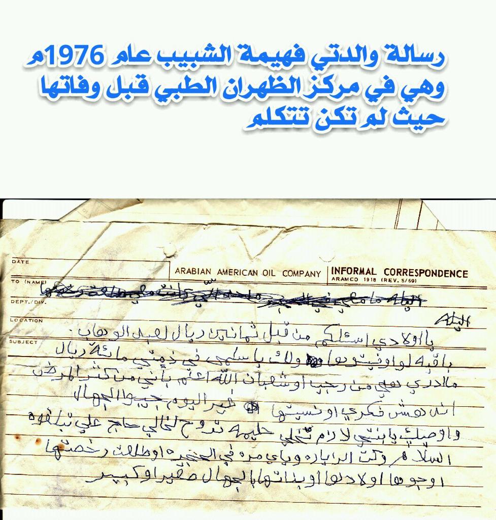 تضمنت: سؤال أولادها عن دين عليها لعبد الوهاب بو صالح عبارة عن 80 ريالًا، وهل قاموا بوفائها أم لا؟، وعبد الوهاب بو صالح، كان تاجر أقمشة في القطيف له معرض في سوق مياس، وكانت تشتري منه أقمشة لتبيعها وتتكسب منها، إقرارًا منها بأن في ذمتها لابنتها سلمى دينًا عبارة عن 100 ريال، والذي لا تتذكر إن كان الدين لابنتها سلمى كان في شهر رجب أو شعبان، وصية لابنتها سلمى لتطلب من ابنتها حليمة أن تذهب لخالها علي سلمان الشبيب وتبلغه سلامها، خبر خروج مريضة كانت معها بنفس الغرفة، وأن أولادها وبناتها أتوا إليها.