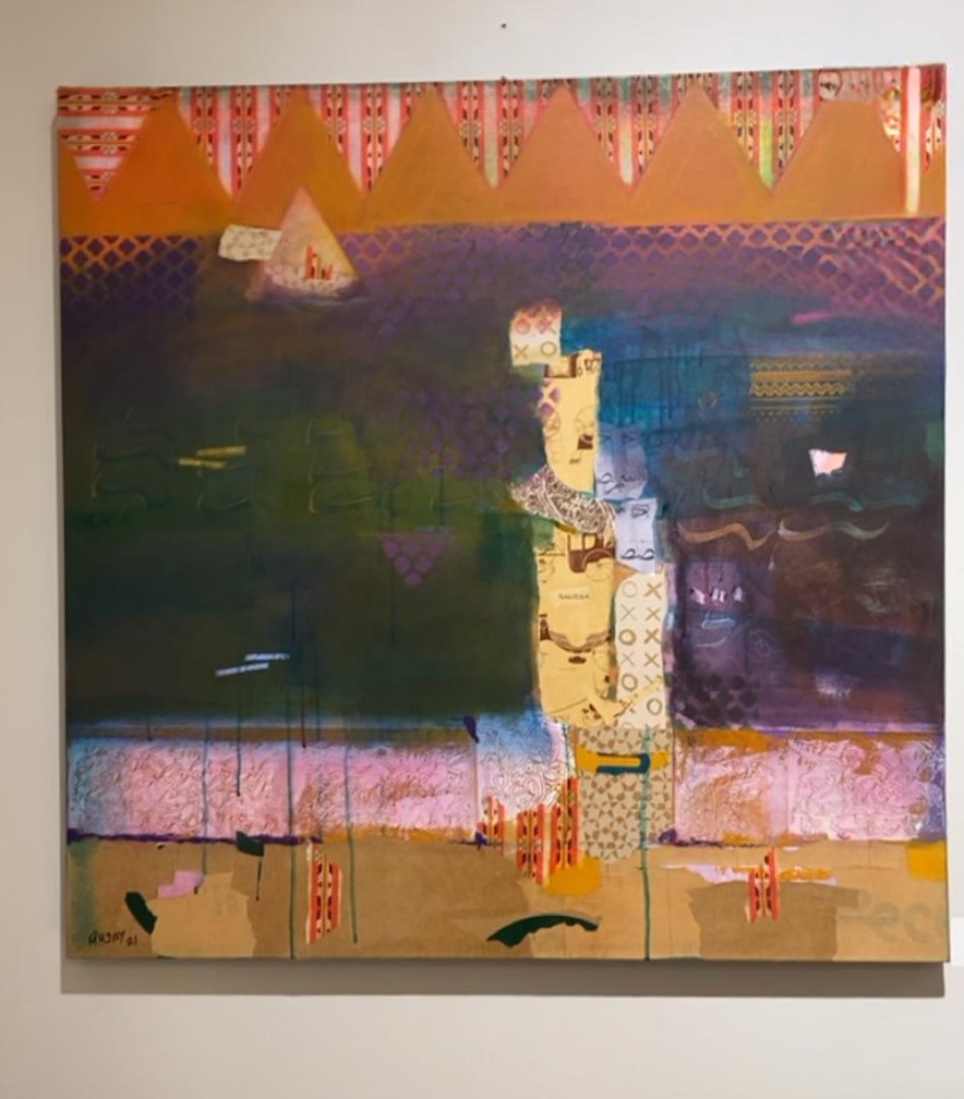 بلا اسم أو عنوان، وبامتزاج ألوان وخامات مختلفة، استندت لوحة الفنان التشكيلي قصي العوامي، على واحد من جدران دار نورة الموسى للفنون المبدعة بالأحساء، خلال مشاركته في معرض الفنون التشكيلية، بمشاركة 62 فنانًا وفنانة من مدارس الفن التشكيلي المتعددة.