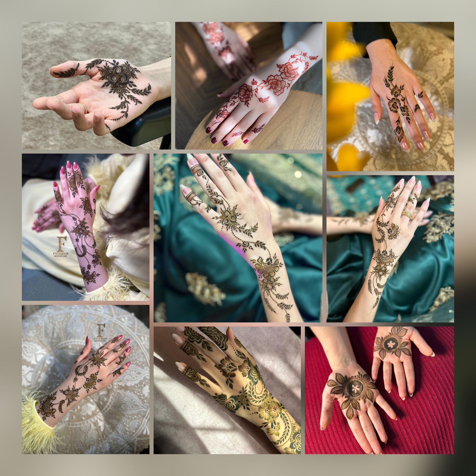 خيالها الخصب وموهبتها الفنية تلهمها النقش غالبًا دون اعتماد على النقوش الجاهزة أو تقليد إحداهن، كذلك شكل اليدين وما يناسبها، فترسم خطة لتوزيع الحناء في مخيلتها قبل سؤال الزبونة ماذا ترغب.