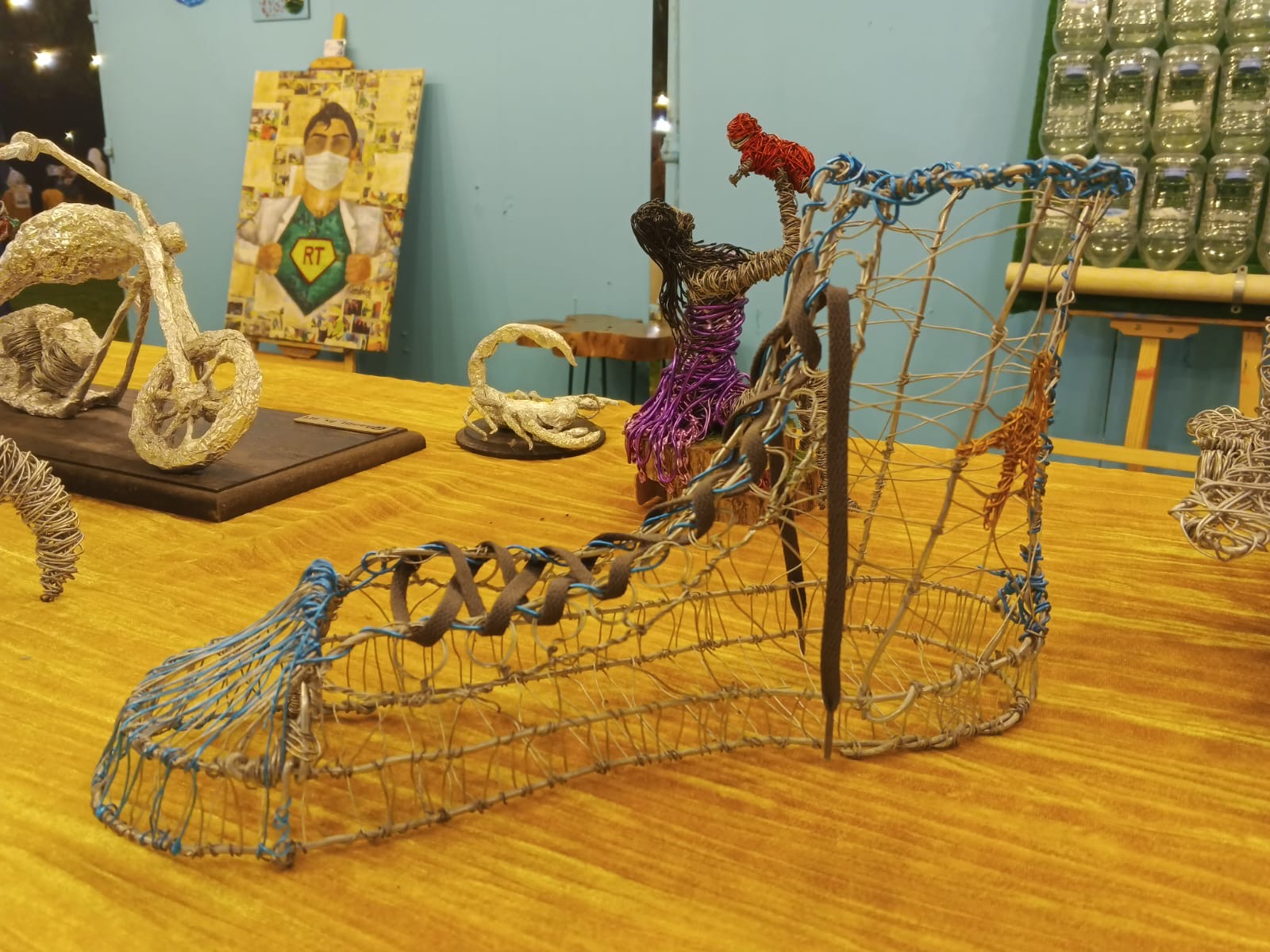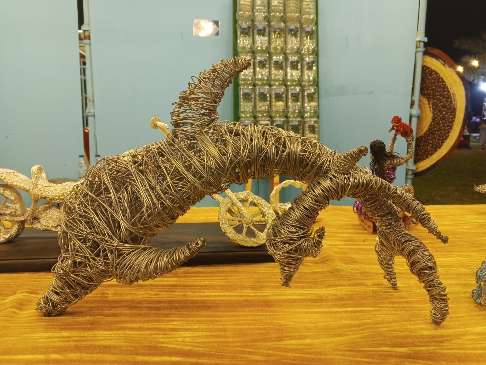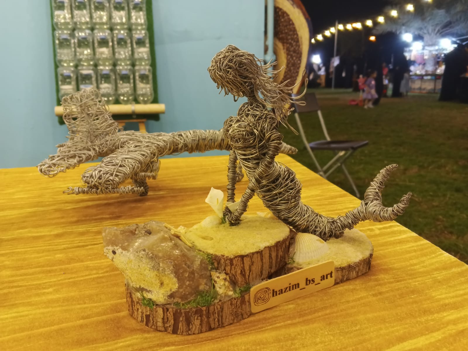 حولت أنامل سبعة فنانين وحرفيين، المخلفات، لأعمال وتحف ومجسمات فنية، ضمها معرض مهرجان «البيئة لنا ولأجيالنا»، الذي يقام على واجهة المحيسنيات البحرية في جزيرة تاروت بمحافظة القطيف.