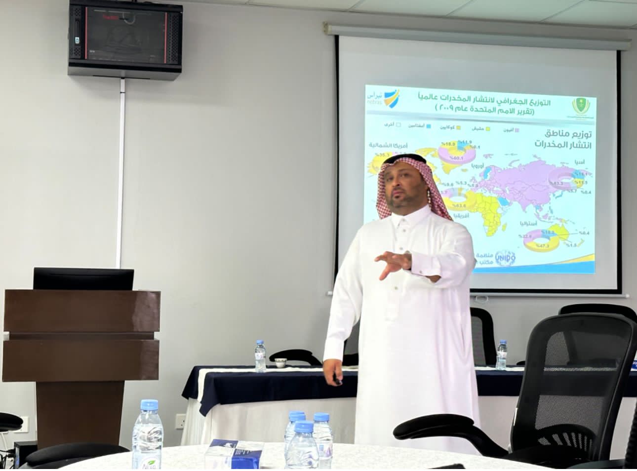 وقدم مدير البرامج العلاجية والوقائية بمكافحة المخدرات في المنطقة الشرقية أحمد الصالح محاضرة تهدف لرفع مستوى الوعي بمخاطر المخدرات وأنواعها ومدى انتشارها بين أفراد المجتمع وطرق التعامل مع المدمن كمريض وليس متهمًا، مؤكدًا تعزيز دور الأسرة في الرقابة وتقديم كل الدعم المعنوي للاستفادة من مهارات الشباب وقدراتهم لتغطية أوقات فراغهم وتوجيه طاقاتهم بشكل فاعل في المجتمع للإسهام في الإنتاج وتنمية هذا الوطن.