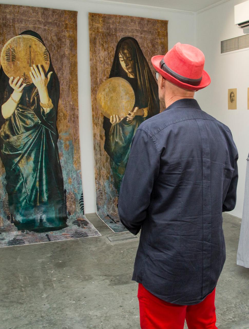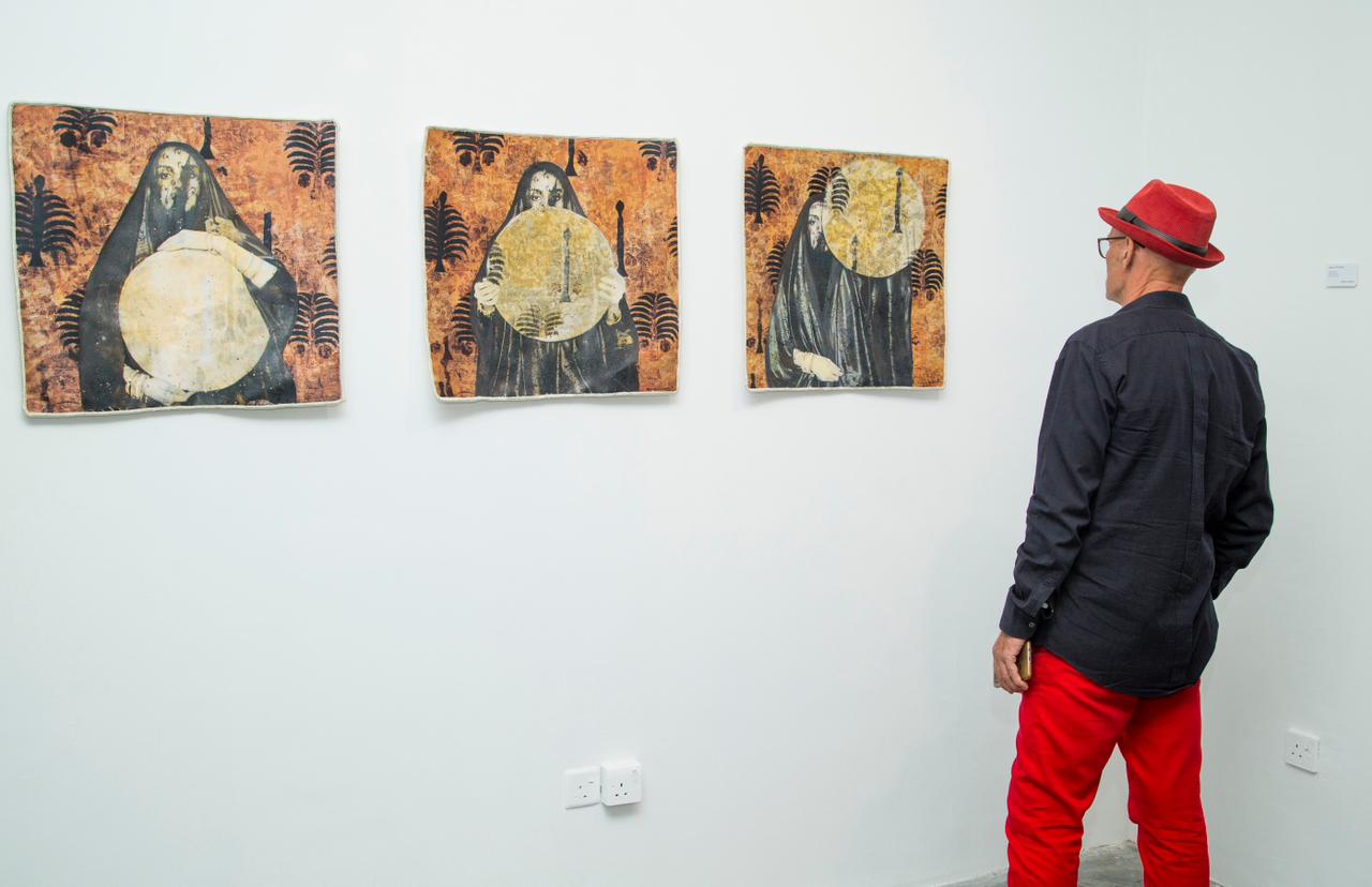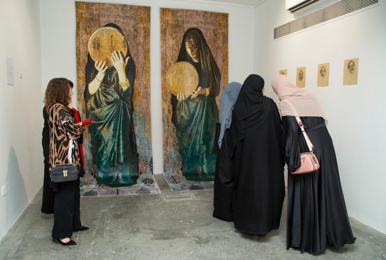 ويضم 31 لوحة فنية لأربعة فنانين، وهم: حسن مير، وفاطمة النمر، ونجلاء السليم وزمان جاسم.