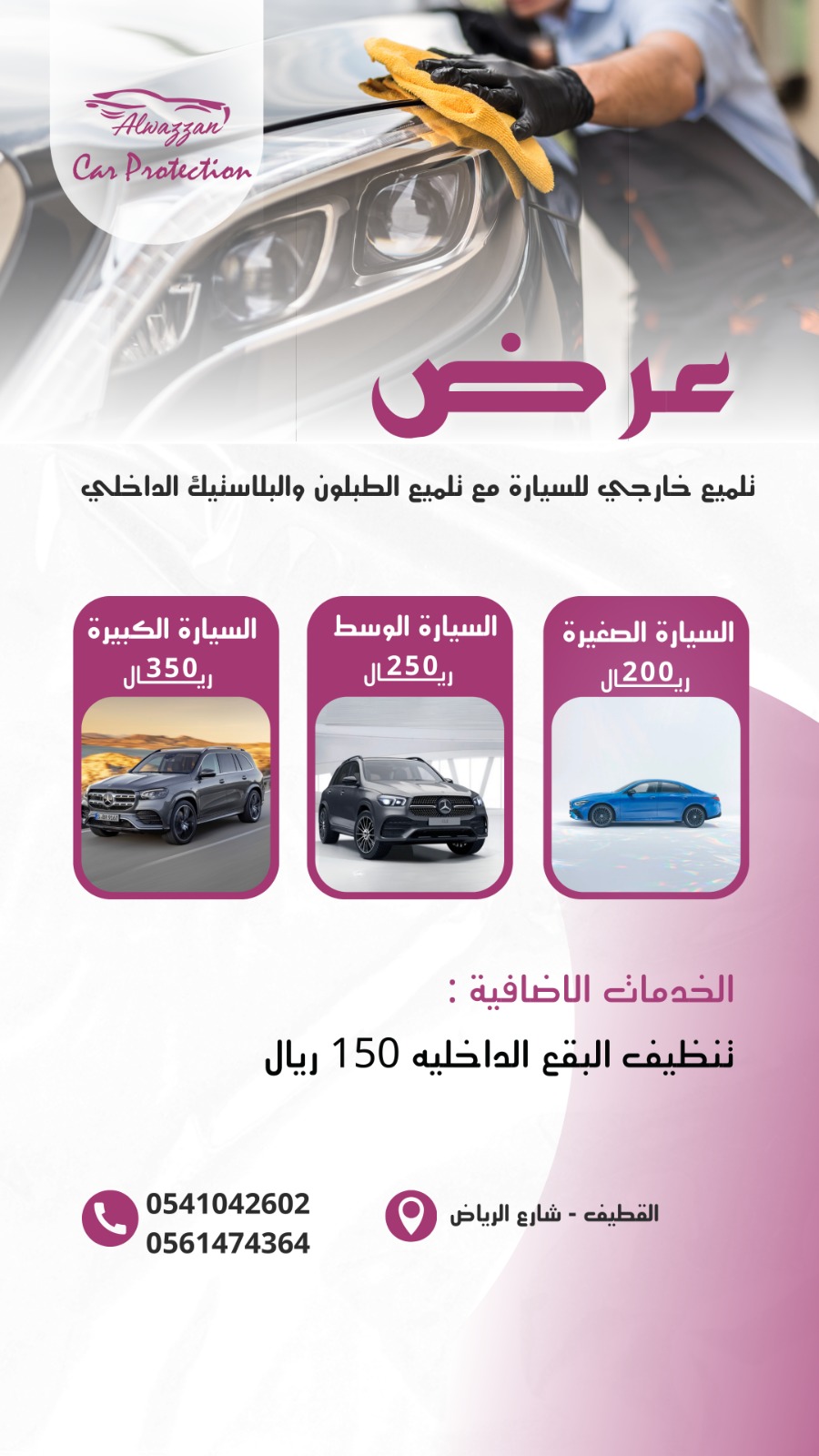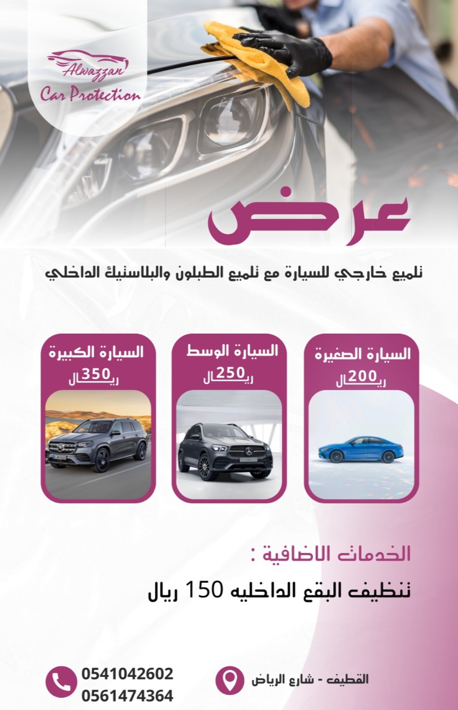 🪄عرض تلميع خارجي للسيارة مع تلميع الطبلون والبلاستيك الداخلي