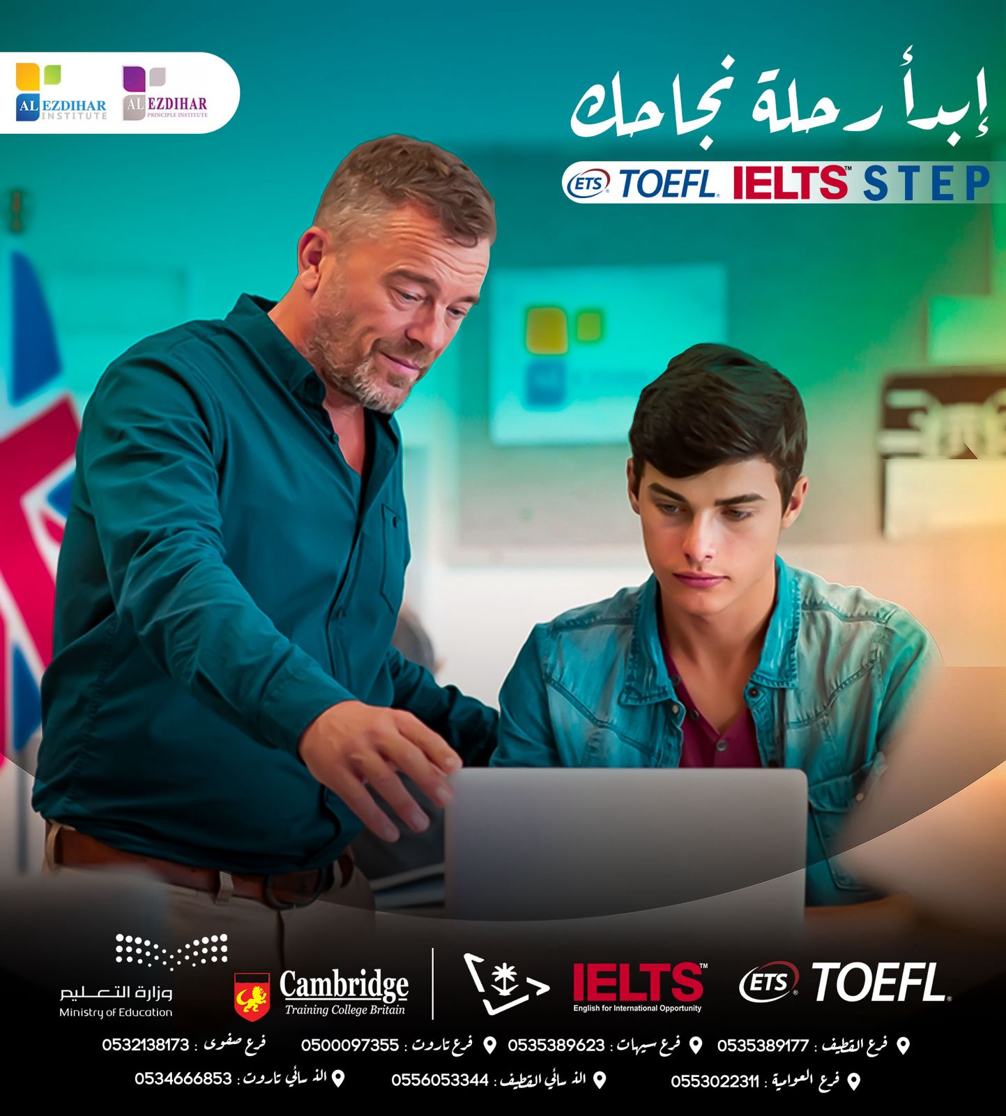 🔹 يقدم معهد الازدهار للغات دورات تدريبية لاختبارات TOEFLوIELTS وSTEP. نحن نوفر مدرسين ذوي خبرة وموارد تعليمية متخصصة لمساعدتك في تحقيق أعلى الدرجات في هذه الاختبارات المعترف بها عالميًا.