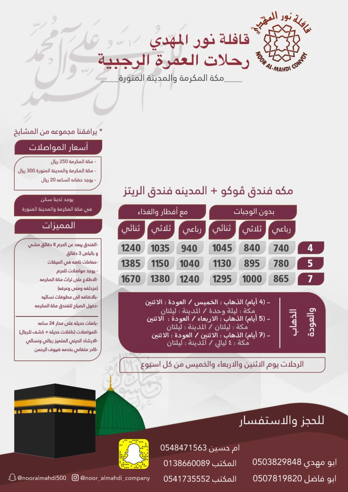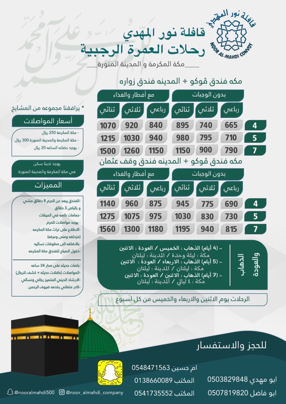 قافلة نور المهدي تُسير رحلات العمرة الرجبية