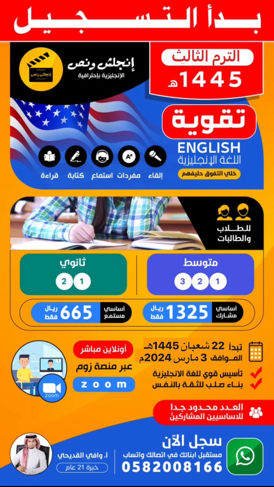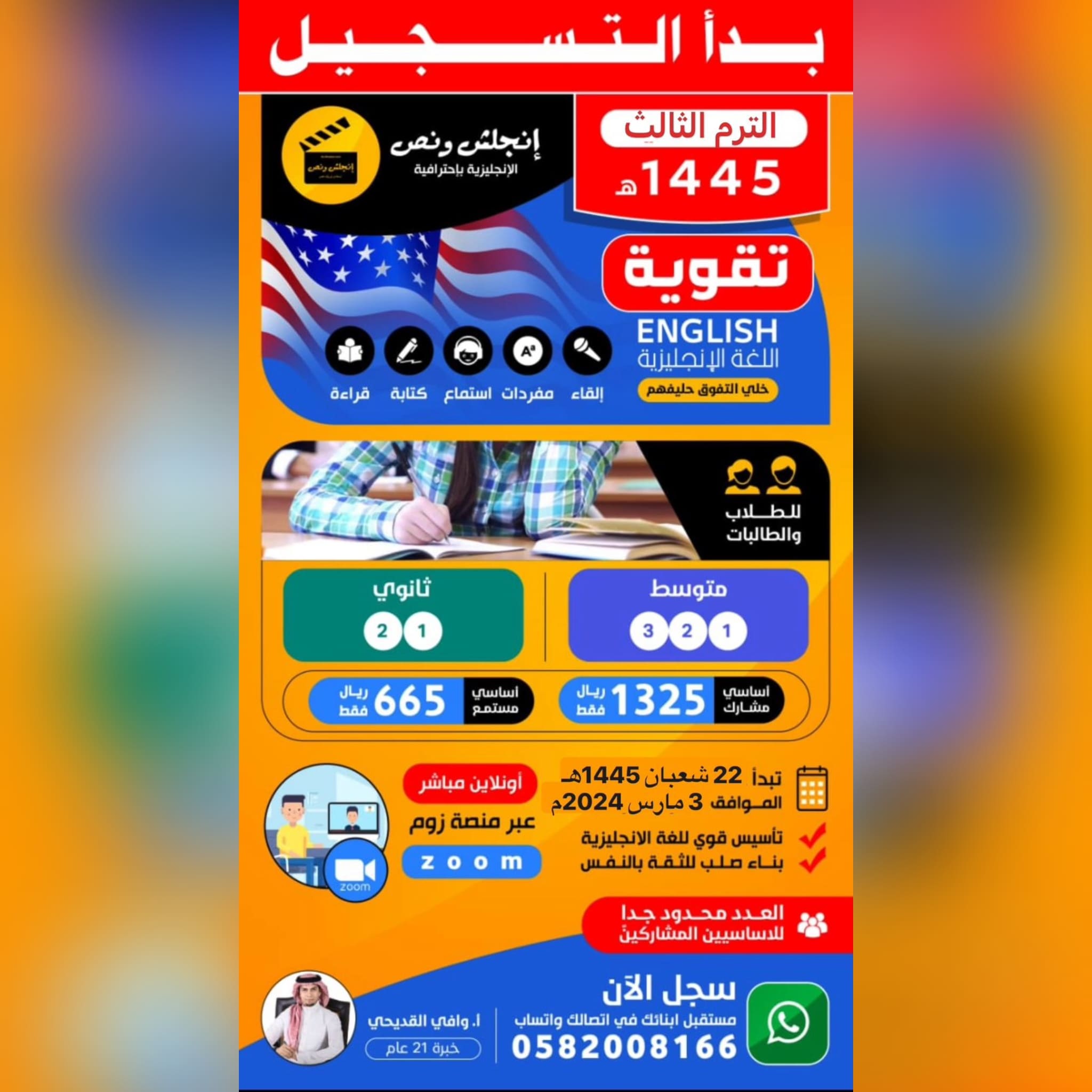 📣 بدأ التسجيل في دورات تقوية 😍 🇺🇸 اللغة الإنجليزية 🇺🇸 ENGLISH للفصل الدراسي الثالث 🔥🥇
