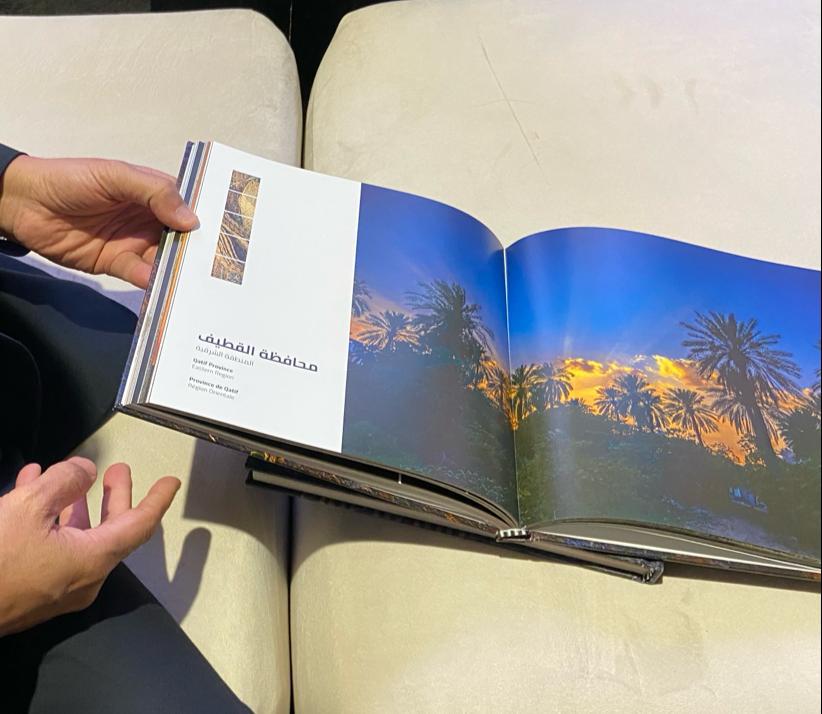وقسم الفنان كتابه الذي خاطب فيه القراء بثلاث لغات العربية، والإنجليزية، والفرنسية إلى جزأين؛ ضم الجزء الأول 200 صفحة، وتضمن ستة أقسام بدأها بالمنطقة الوسطى التي تحتضن نجدًا وتراثها، مرورًا بحافة العالم جبل فهرين، محافظة الحريق (جنوب الرياض)، متجهًا بعدها للمنطقة الشرقية ومنها كانت المحطات التي لا تنسى في محافظة الأحساء، ومركز الصرّار، خاتمًا رحلته فيه بمحافظة القطيف مهد ولادته وطفولته التي كانت بين نخيل بلدة أم الحمام.