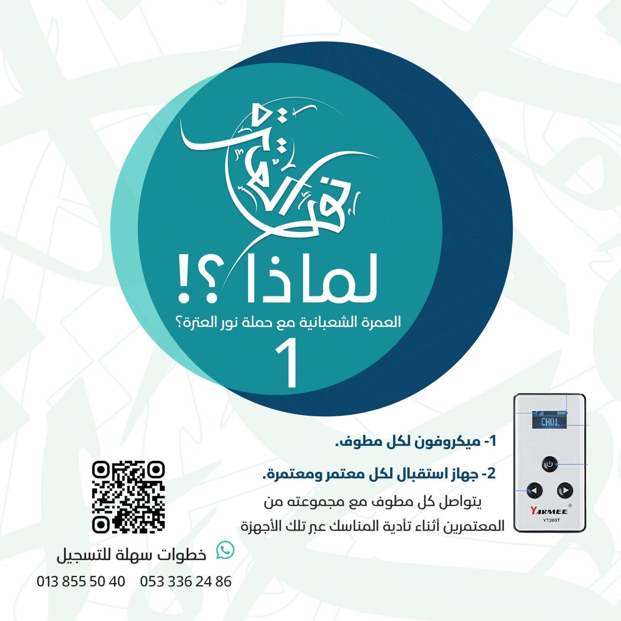 🔶توفير أجهزة إرسال واستقبال بين المطوف والمعتمرين أثناء أداء المناسك.