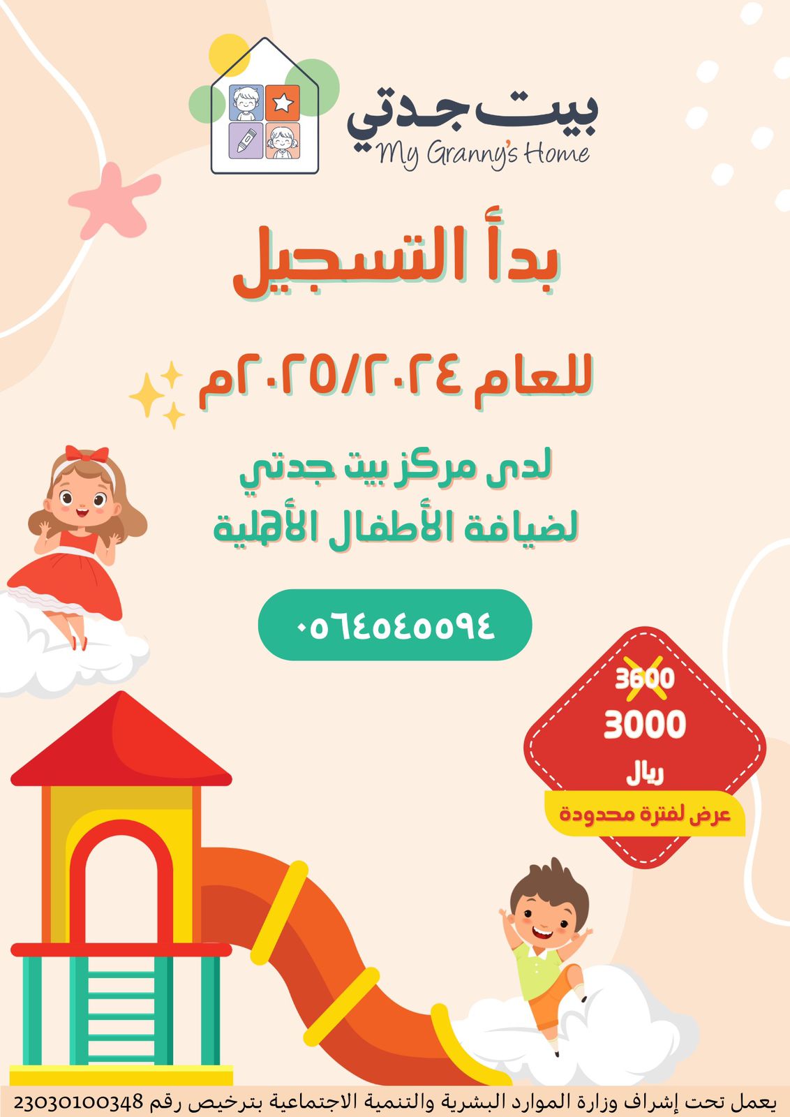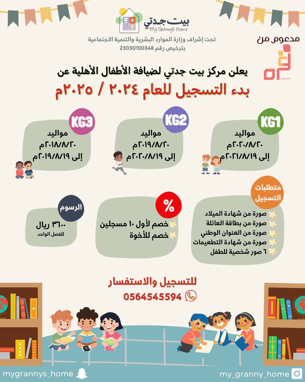 ✏️يعلن مركز بيت جدتي لضيافة الأطفال الأهلية