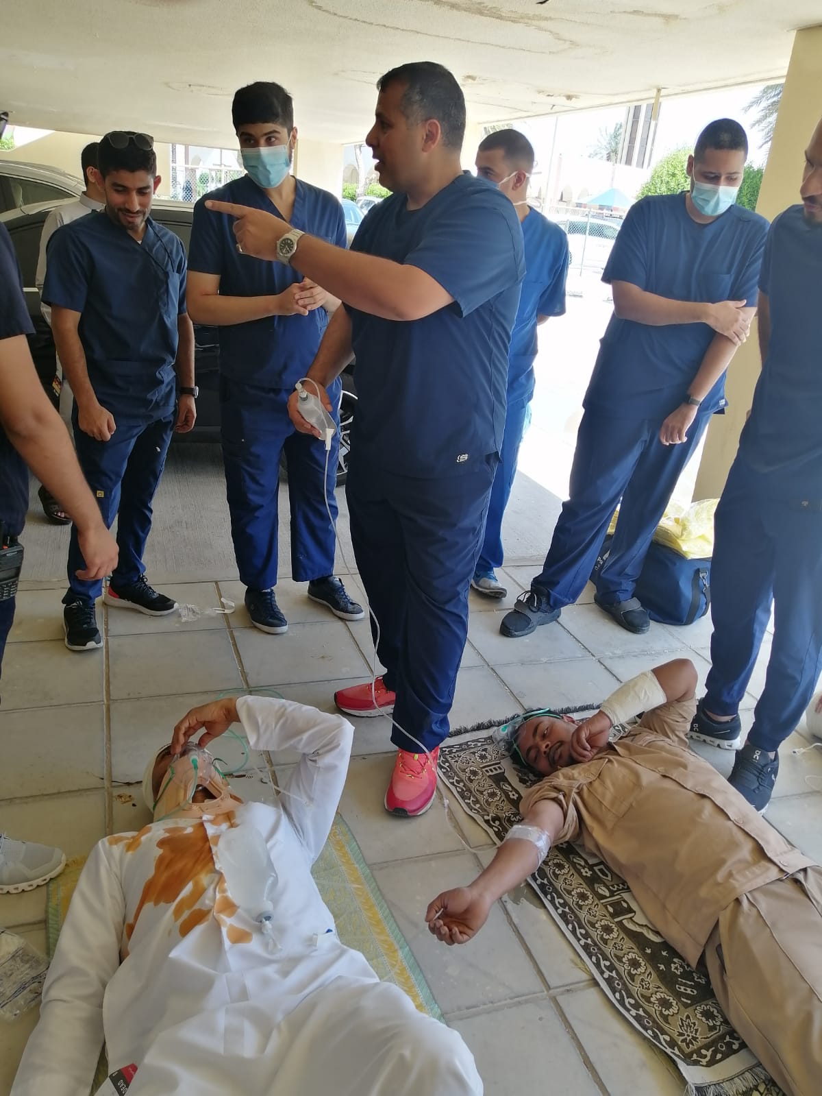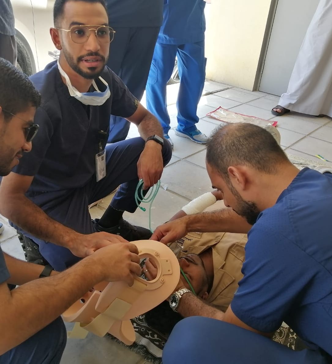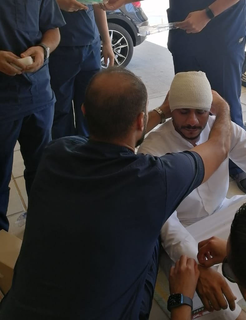 واستقبل قسم الطوارئ ضمن سناريو الخطة إصابتين حرجتين لرجل يبلغ من العمر 50 سنة لديه نزيف شديد وكسر في الفخذ، وشاب يبلغ من العمر 30 سنة لديه إصابة رأس حادة، فيما كانت هناك حالتان قد صُنِّفتا كإصابات متوسطة لشاب يبلغ من العمر 18 سنة لديه كسر في الأصبع وجروح قطعية، وأنثى تبلغ من العمر 40 سنة لديها جروح قطعية في الجلد تحتاج إلى خياطة، بينما سُجِّلت حالتان على أنهما مستقرتان لطفل يبلغ من العمر 5 سنوات لديه جروح سطيحة وكدمات بسيطة، وأنثى تعاني آلامًا بسيطة وكدمات في مناطق متفرقة، وتوفيت حالتان وفقًا للسيناريو إحداهما طفل لديه نزيف شديد في الرأس، وأنثى تم عمل إنعاش قلبي رئوي لها في الموقع ولا توجد استجابة.