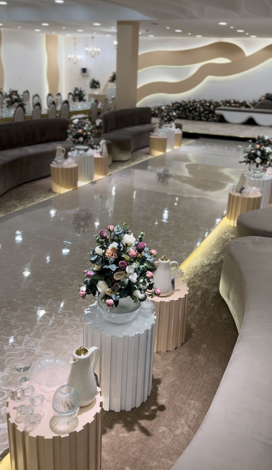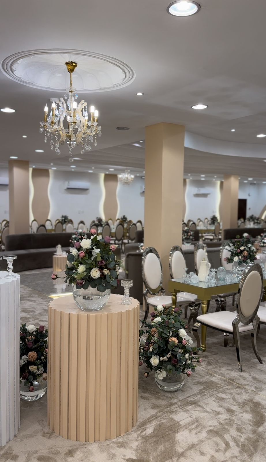 👈بالإضافة إلى مشرفة وعاملة نظافة وأيضًا تنسيق الكوشة وطاولة الكيك.
