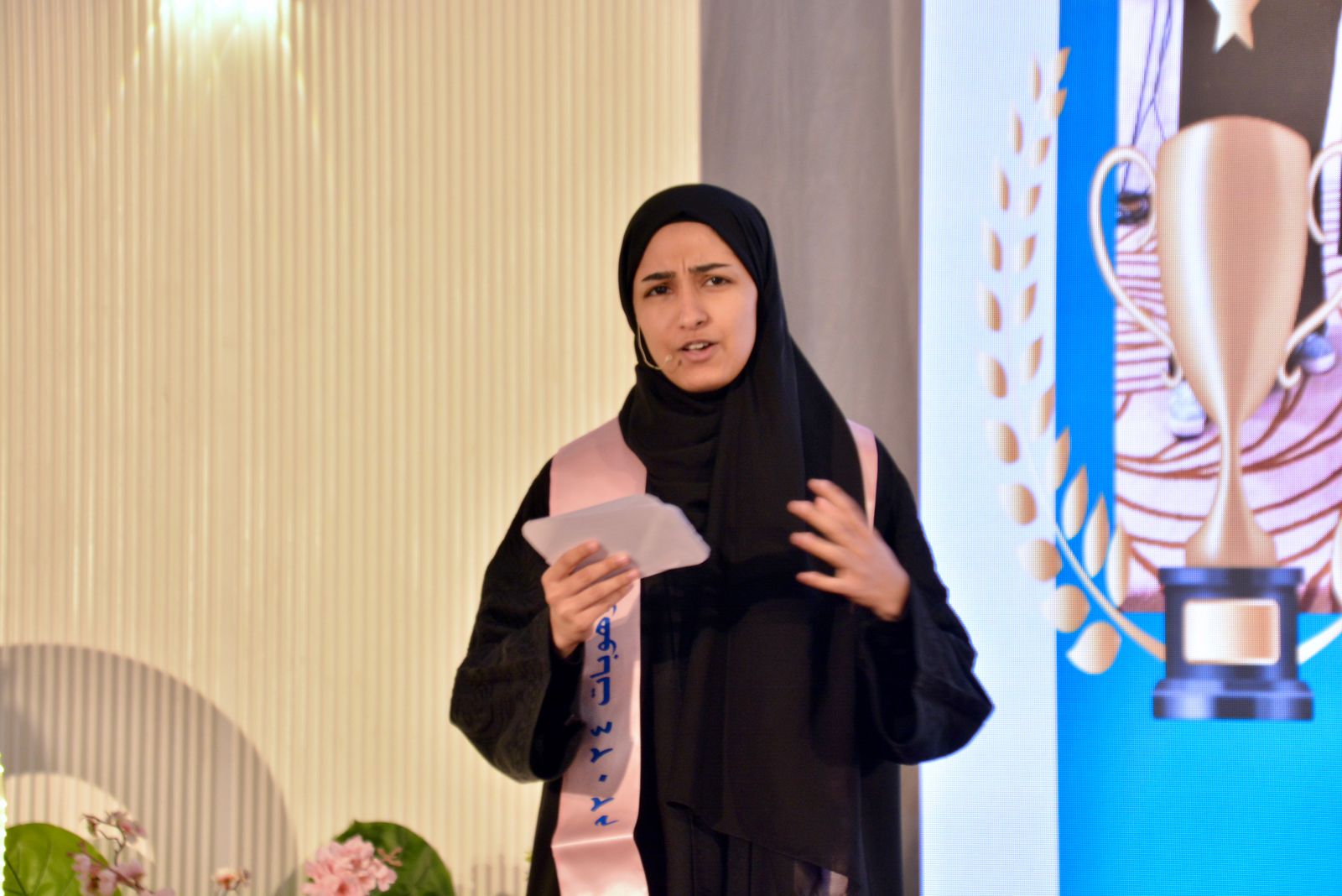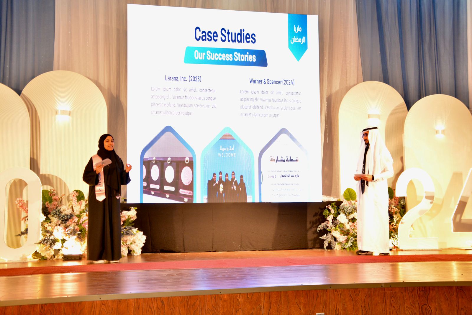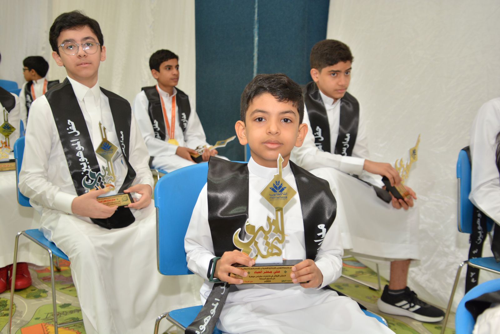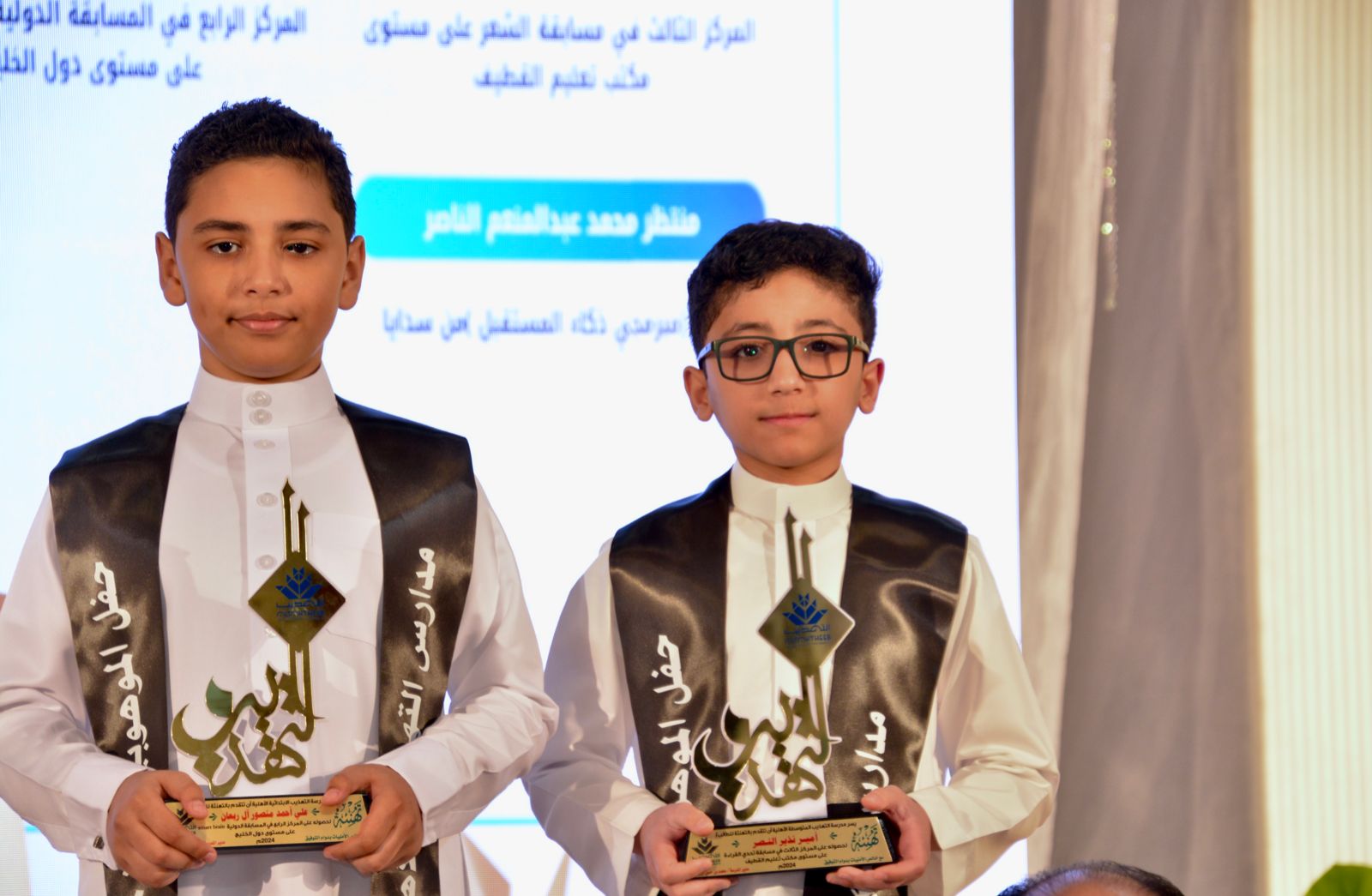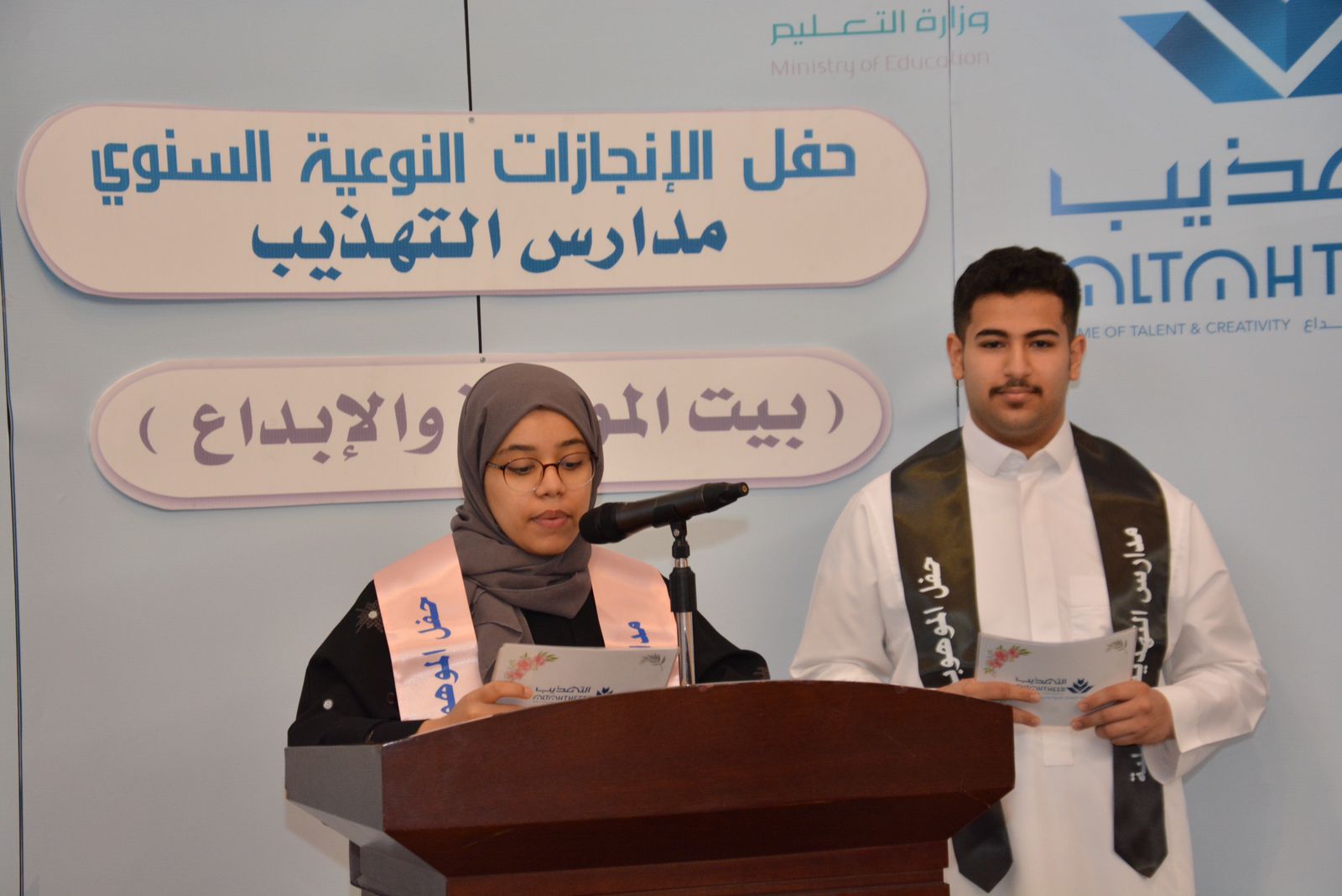 هذا واشتمل الحفل على مقطع مرئي عن الإنجازات بعنوان (تميز وريادة)، ومشاهد للطلبة علي الخليفة والطالبة ماريا الرمضان وعبدالعزيز السلطان وماجد الخضراوي، وفقرة فنية باللغة الإنجليزية قدمتها طالبات مدارس التهذيب، بالإضافة إلى الفقرة الرئيسة للحفل والتي تم فيها تكريم 182 طالبًا وطالبة من حققوا إنجازات متنوعة في عدة منافسات منها: مسابقات الأولمبياد العلمي في العلوم الرياضيات، اختبارات موهبة الثانوية، مسابقة موهوب2، مسابقة الكانجارو في الرياضيات، مسابقة بيبراس المعلوماتية، مؤتمر Space2101، مسابقة إبداع، اختبار القدرات العامة، اختبار التحصيل الدراسي، مسابقات القرآن الكريم، المسابقات الأدبية، مشروع تحدي القراءة، المسابقات الرياضية في رمي السهام والسباحة والتايكوندو وكرة القدم والطائرة والكاراتيه.