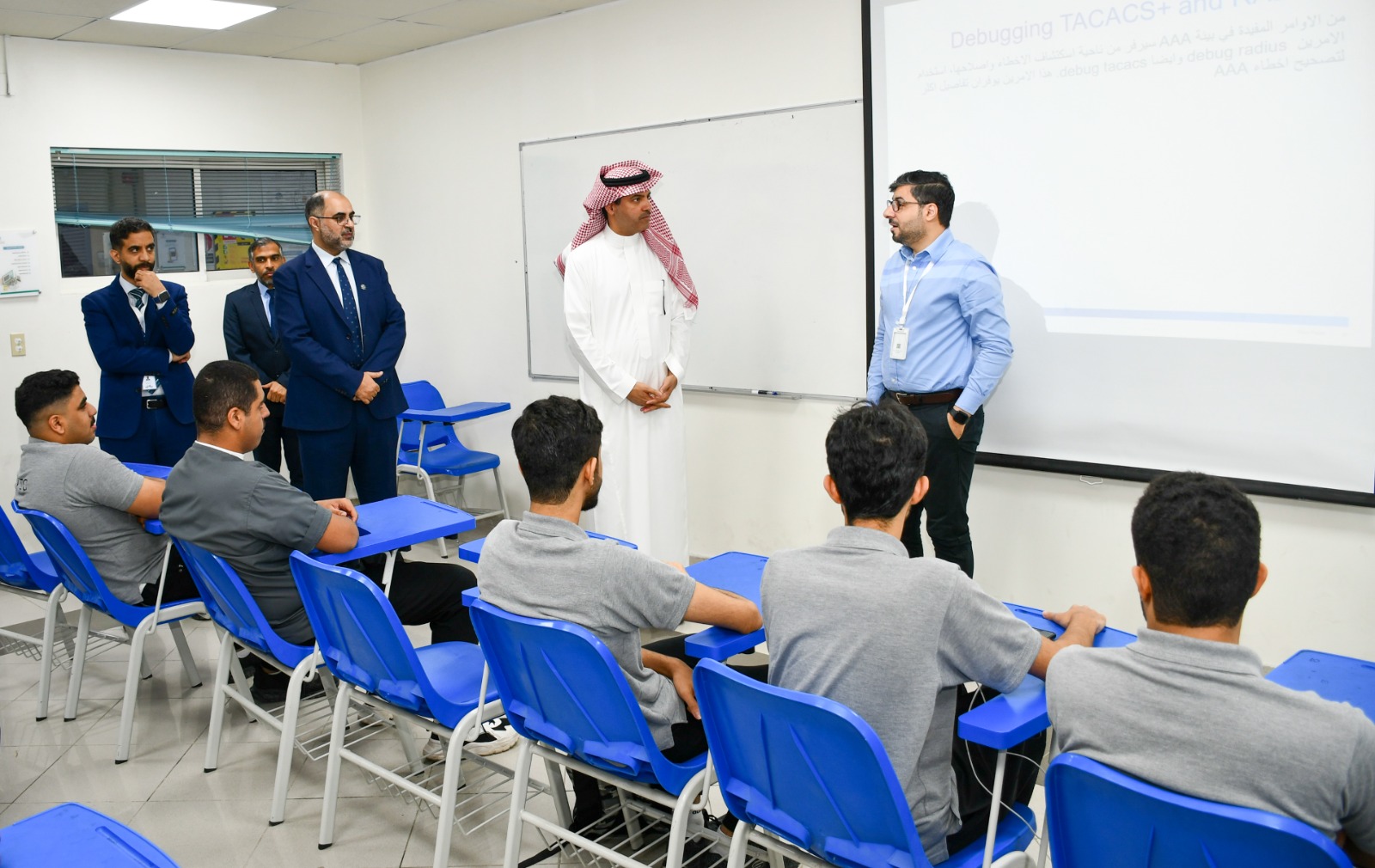 واطلع الزنيدي على مرافق الكلية المختلفة ومدى جاهزية المباني والتجهيزات التدريبية، كما التقى بعض المتدربين ومدربي الكلية في القاعات التدريبية.