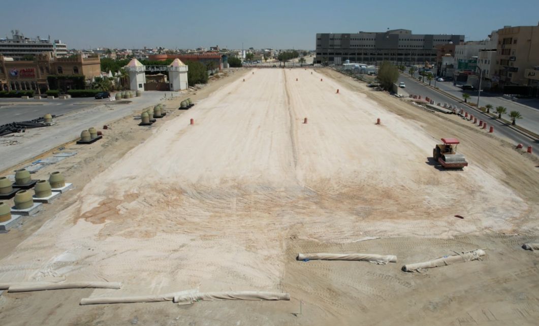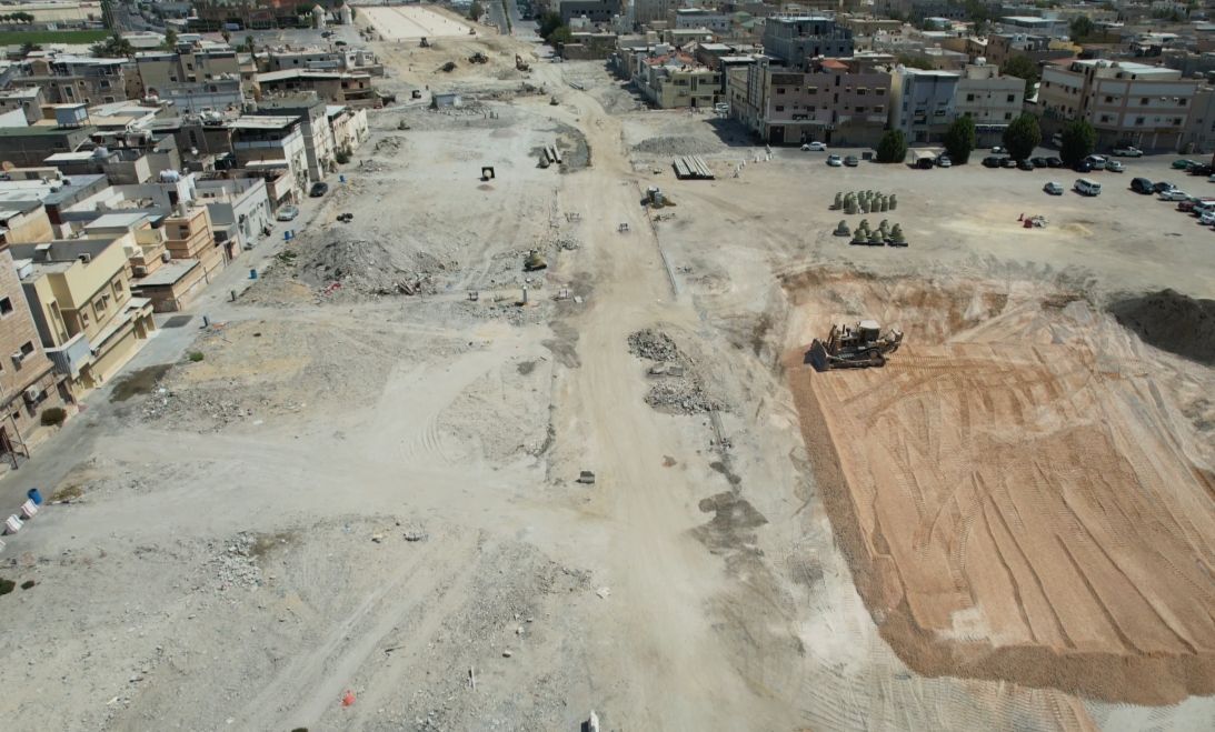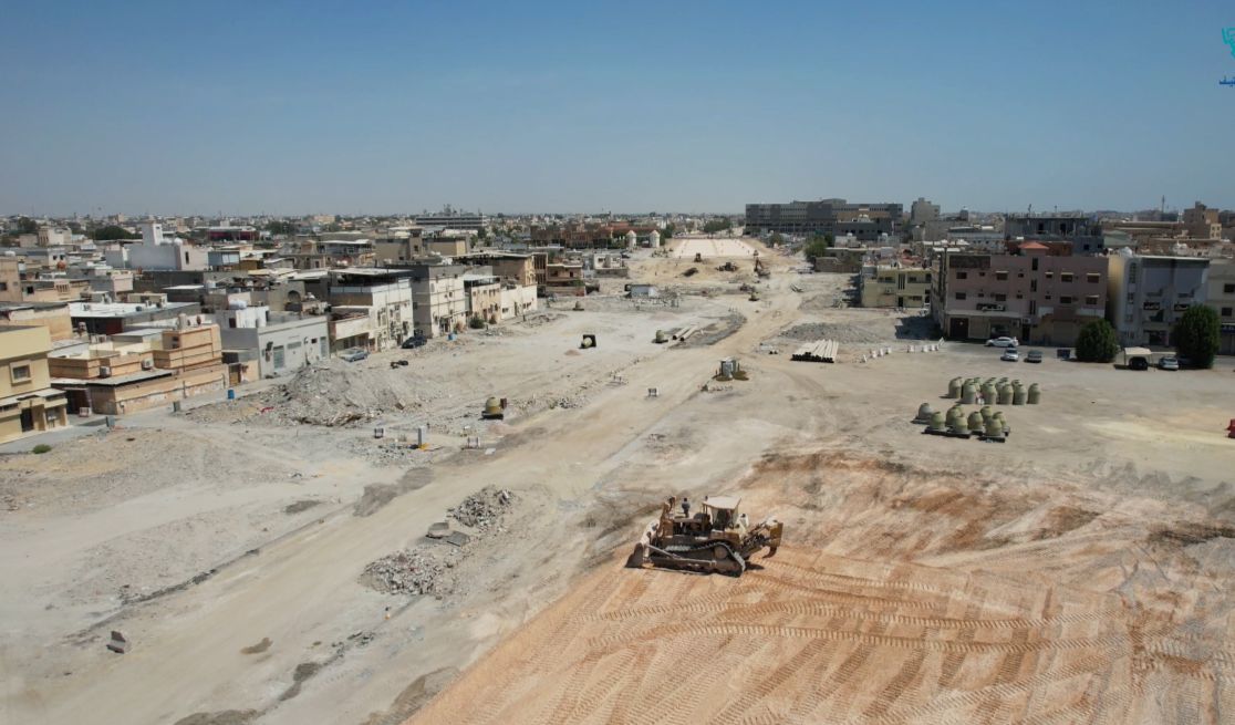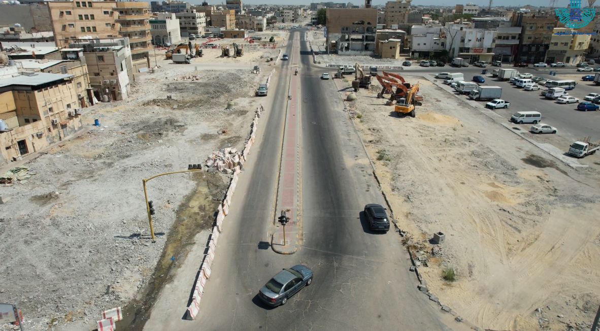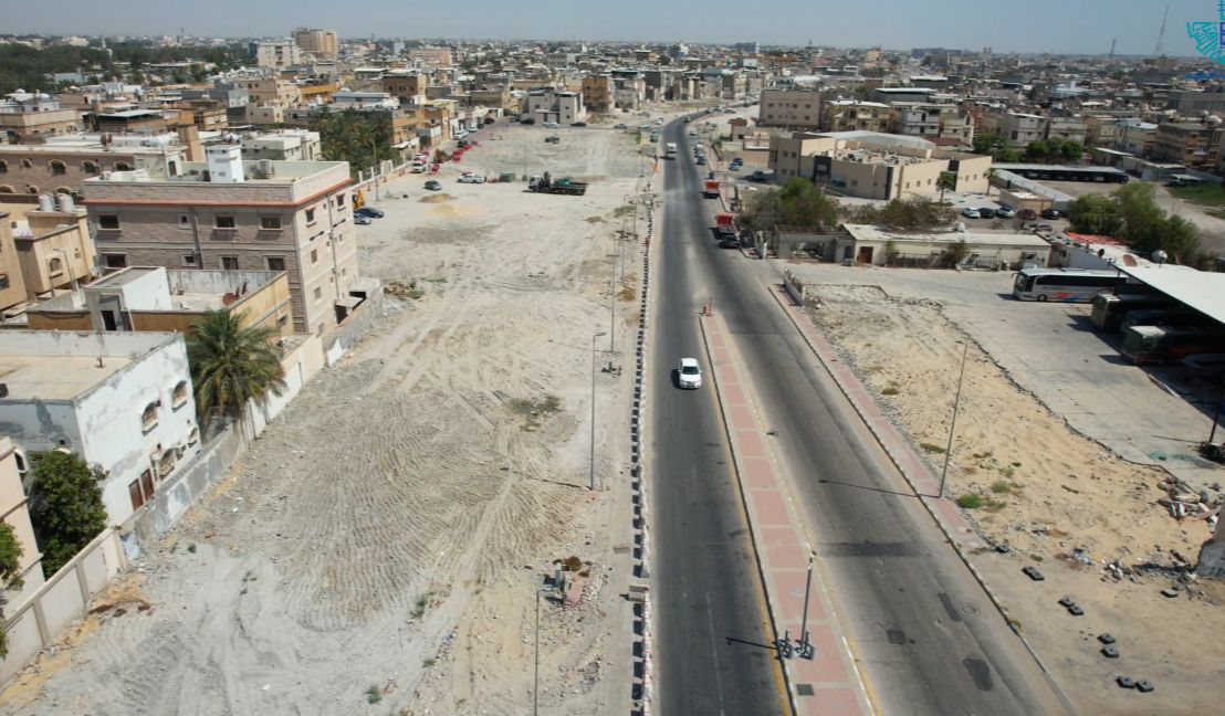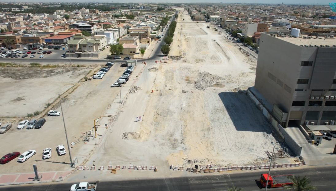 وكشفت صور نشرتها بلدية القطيف ما وصلت إليه أعمال التطوير بعد نحو عام من بداية أعمال إزالة العقارات وتطوير الطريق.