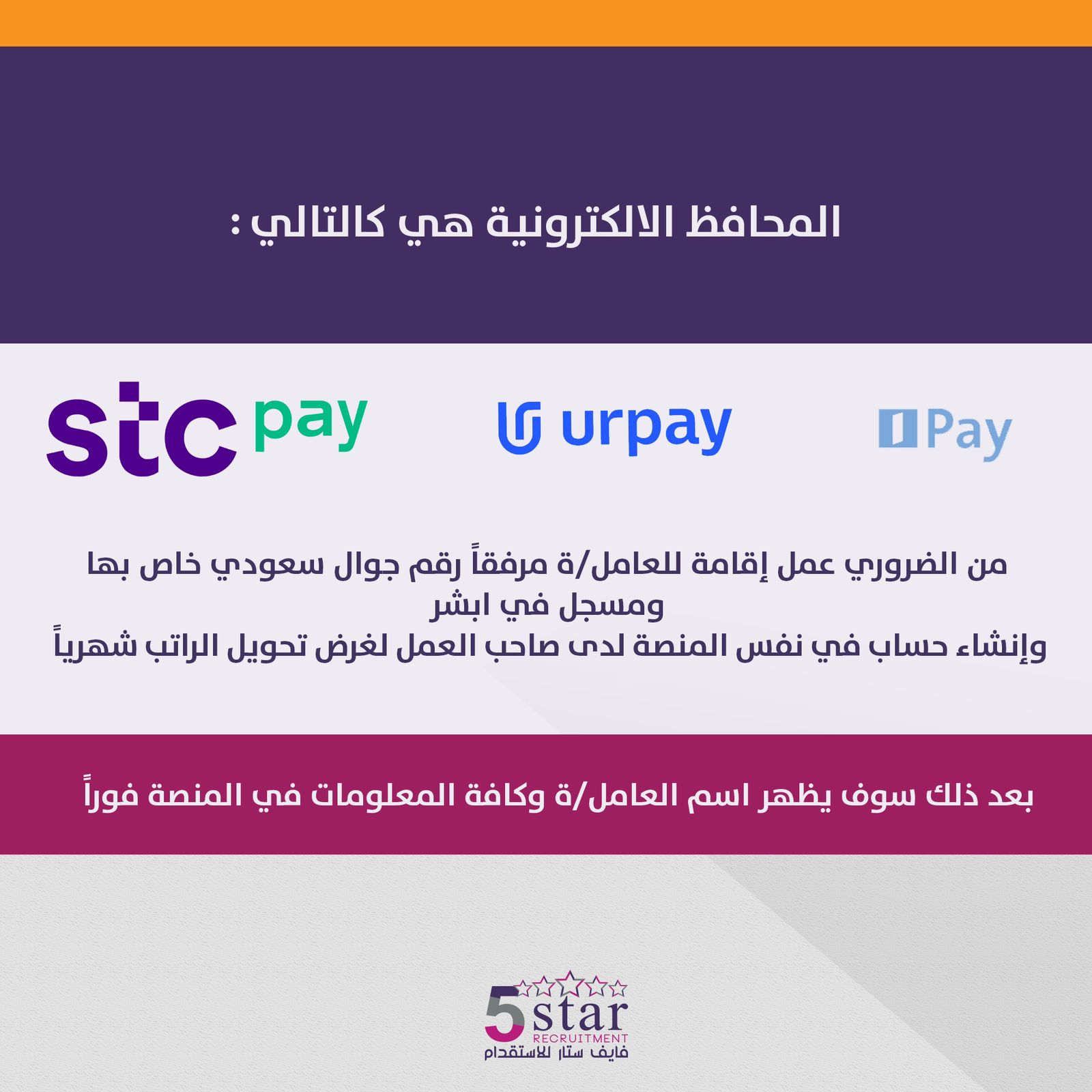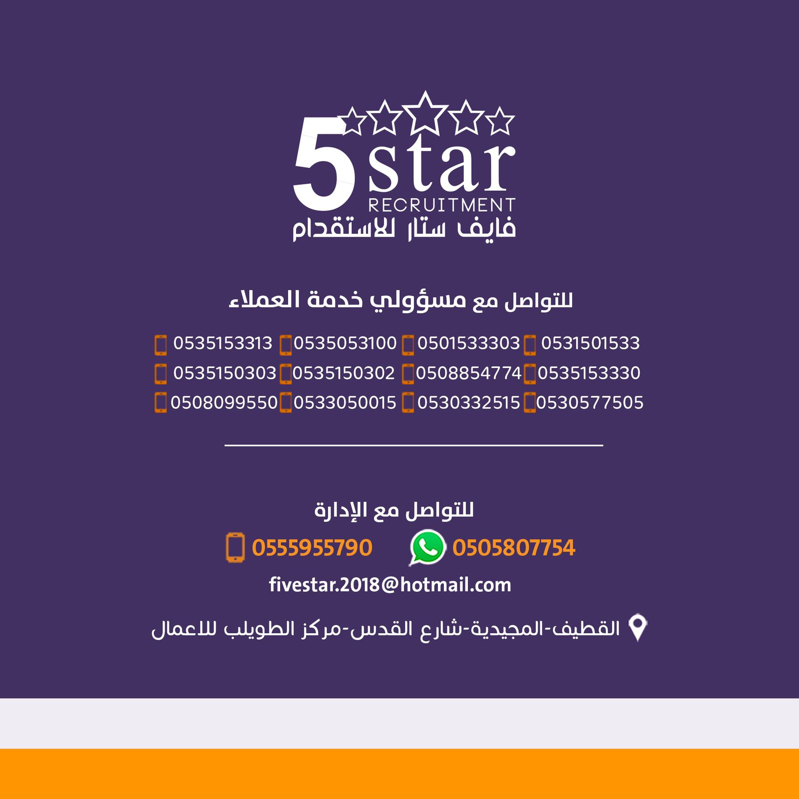 ⭐️ تابعونا على الانستقرام عبر صفحتنا الجديدة five_star_recruitment