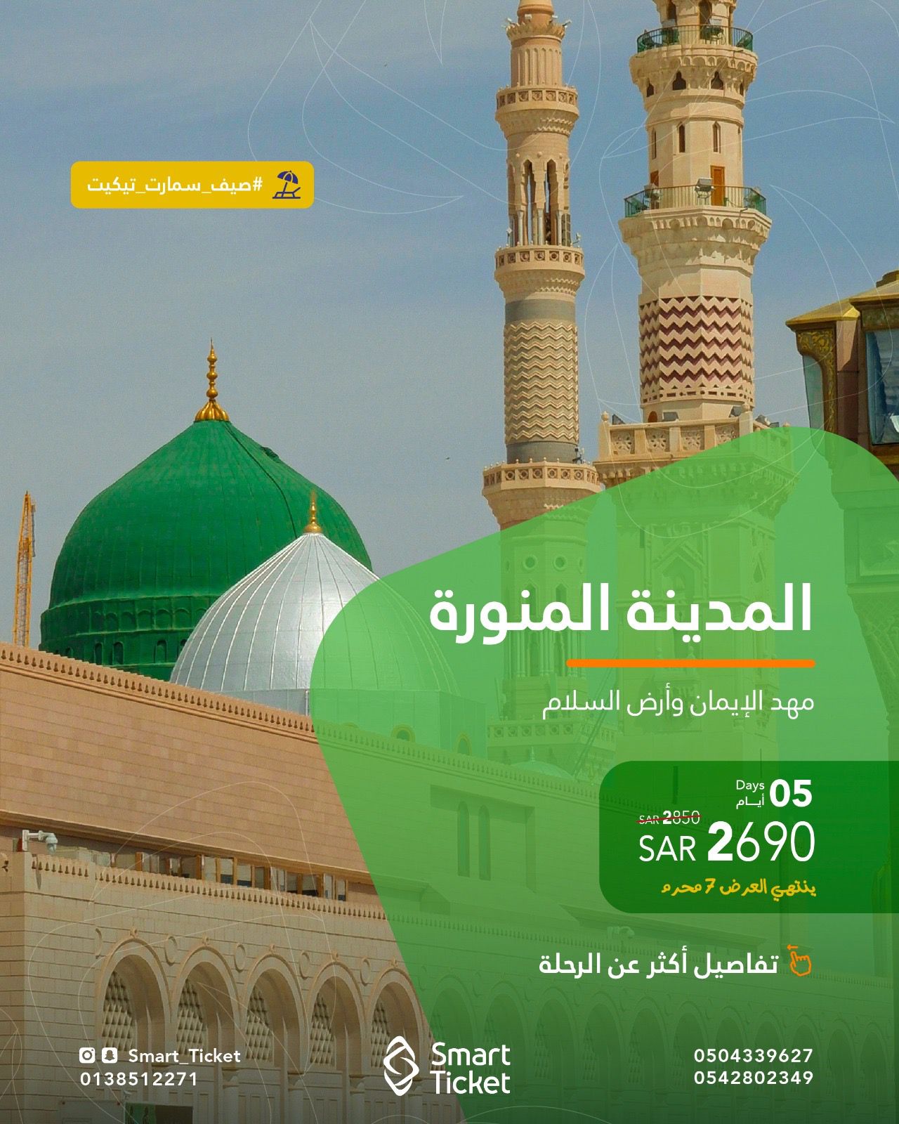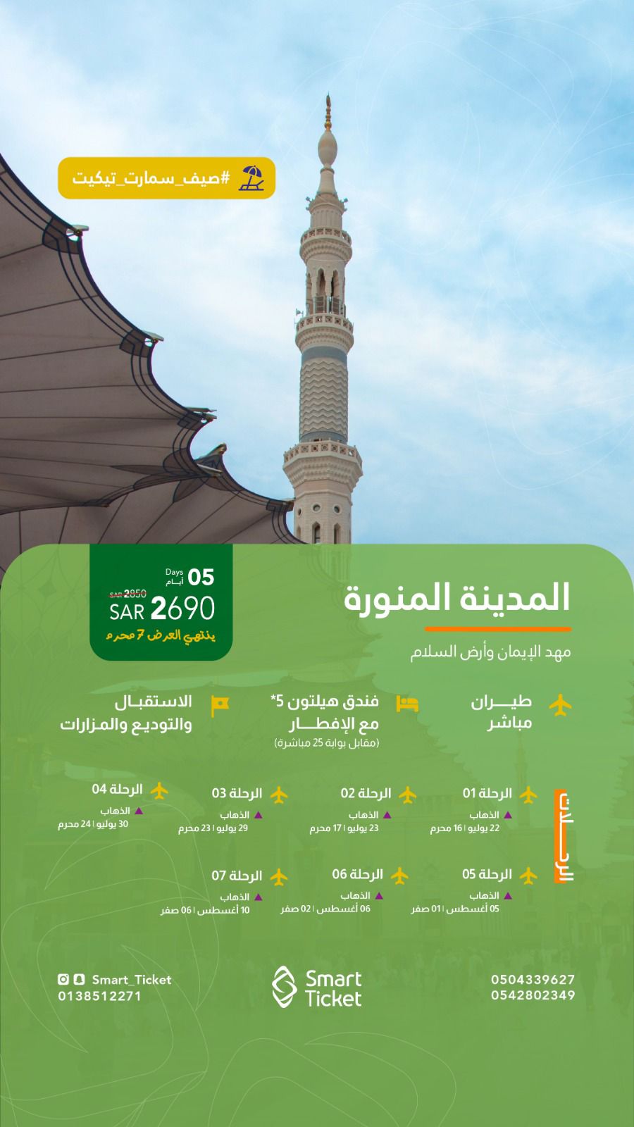 🕌 رحلات المدينة المنورة طيران | في محرم وصفر مع التذكرة الذكية