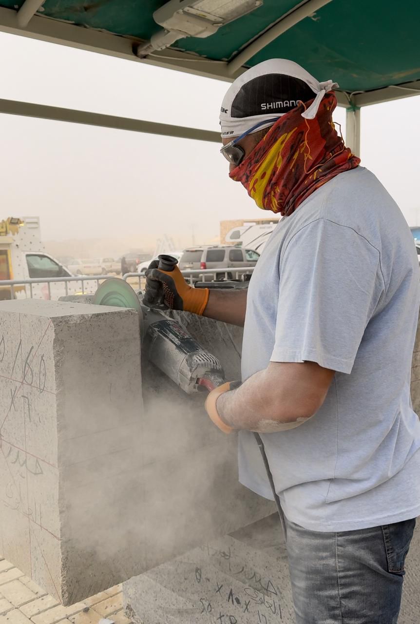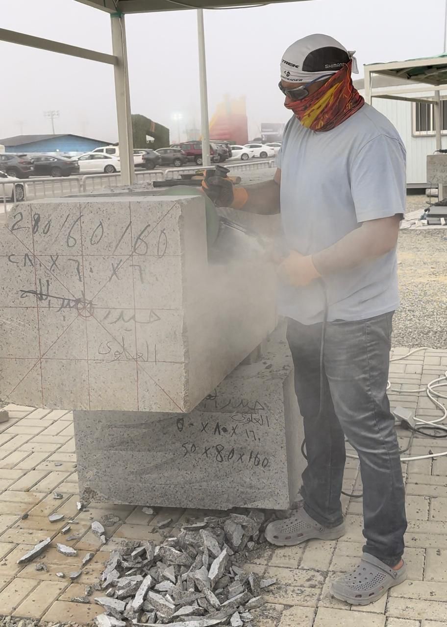 ويستخدم العلوي حجر الجرانيت الرمادي، والذي يأتي حجرًا ناريًا، صلبًا أكثر من الرخام، ويحتاج لأدوات خاصة، وكذلك وقت أطول، لذا فإن العمل يستغرق شهرًا، ليبزغ في الأفق.