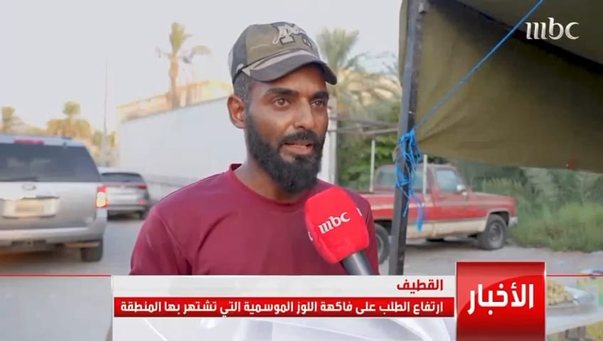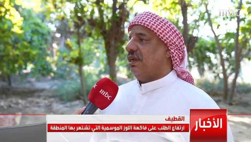من جانبٍ آخر، تكلم البائع بدر العريوتي عن موسم بيع اللوز، منوهًا بأن الموسم يبدأ بنوع الحبان، وهو النوع الذي يتراوح سعر الكرتون منه عند نزوله بين 1200 و1400 ريال، ثم يعرف انخفاض السعر عندما يتزايد إنتاجه، حيث يصل سعره إلى 500 أو 400 ريال، لكنه يعاود الارتفاع في نهاية الموسم، موضحًا أن مؤشر الارتفاع والانخفاض يعرفهما النوع الإماراتي والبلدي أيضًا.