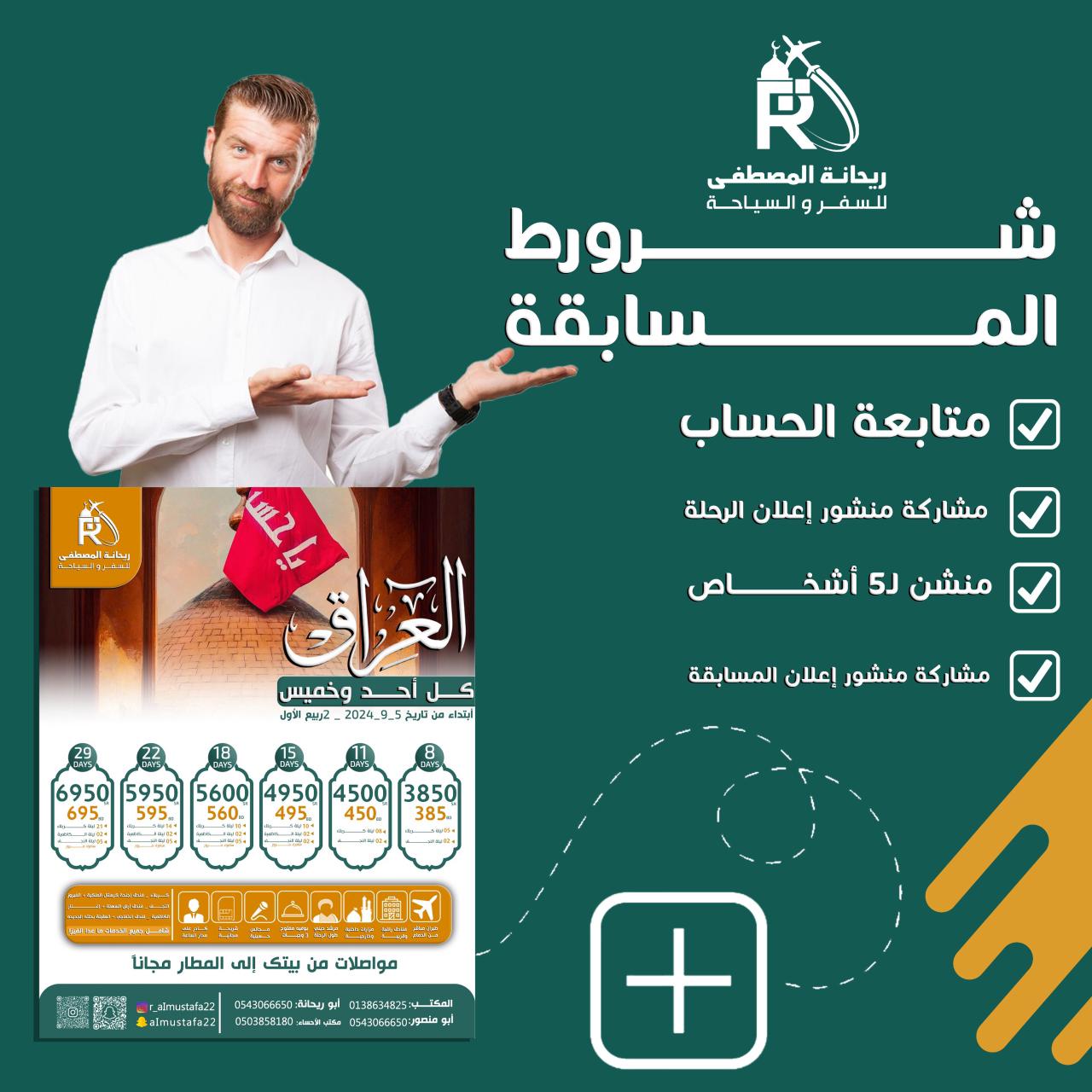 🥇عدد 2 رحلة مجانية للعراق شاملة جميع الخدمات