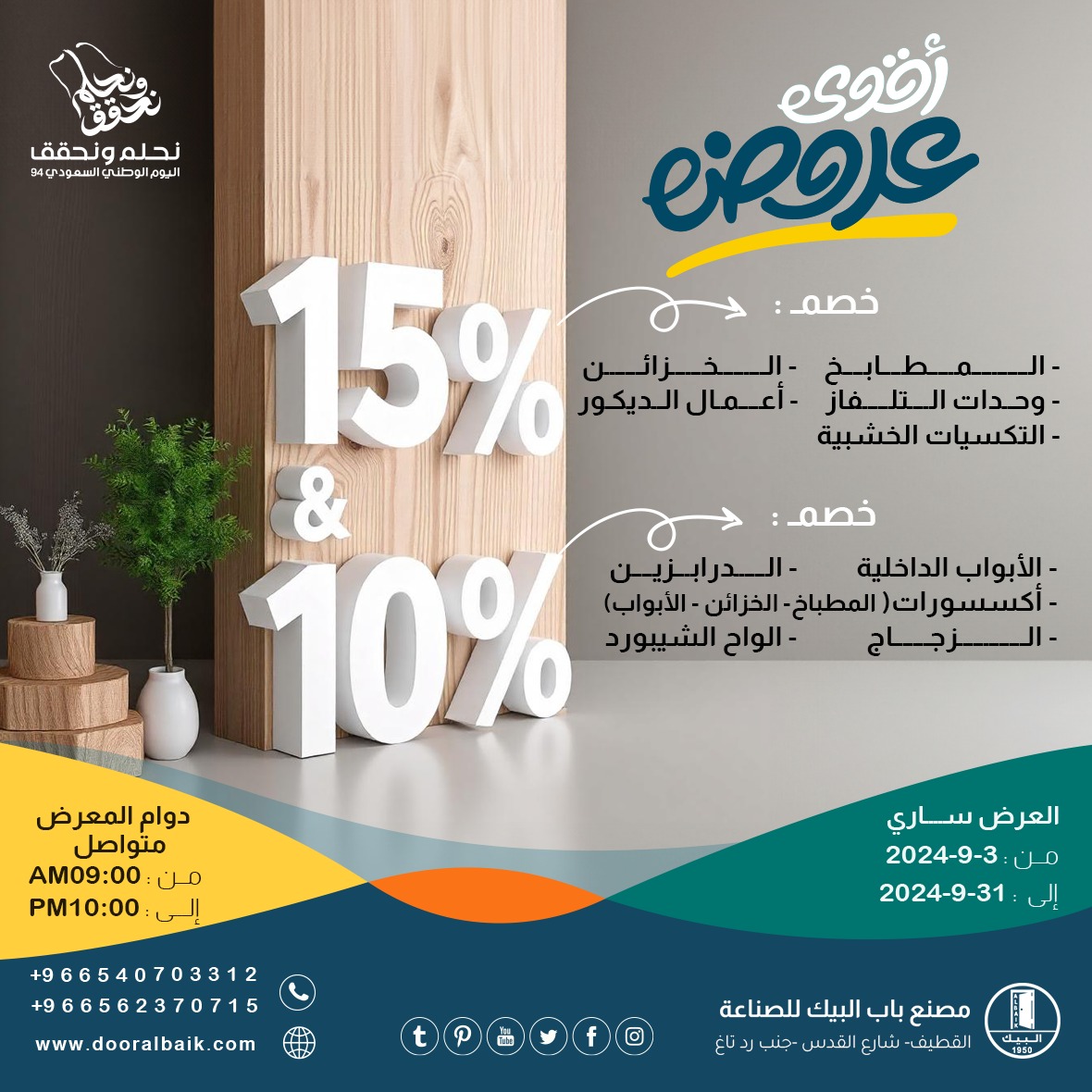 💫 خصومات تصل إلى 15% لدى «مصنع باب البيك»..