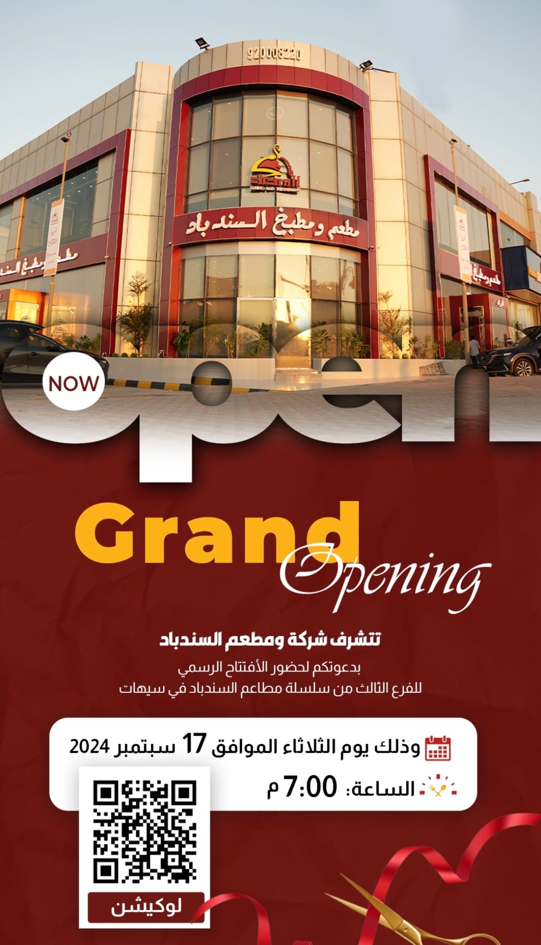 دعوة لحضور افتتاح الفرع الثالث لـ «مطعم ومطبخ السندباد» في سيهات بواسطة : القطيف اليوم - القطيف اليوم 16 , سبتمبر 2024 05:30 م ⚡️ تتشرف شركة ومطعم السندباد بدعوتكم لحضور الافتتاح الرسمي للفرع الثالث من سلسلة مطاعم السندباد في سيهات. 🗓️ يوم الثلاثاء 17 سبتمبر 2024م⏰ الساعة 7:00 مساءالموقع : سيهات https://maps.app.goo.gl/1BZ5xHRr2thaMRCA7📍إعلان ترويجي...