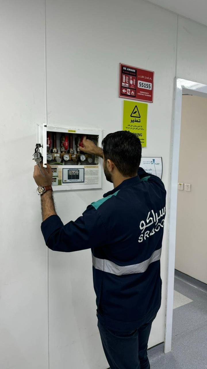 حريق في الجهاز، وتم تفعيل الكود الأحمر والاتصال بالدفاع المدني.