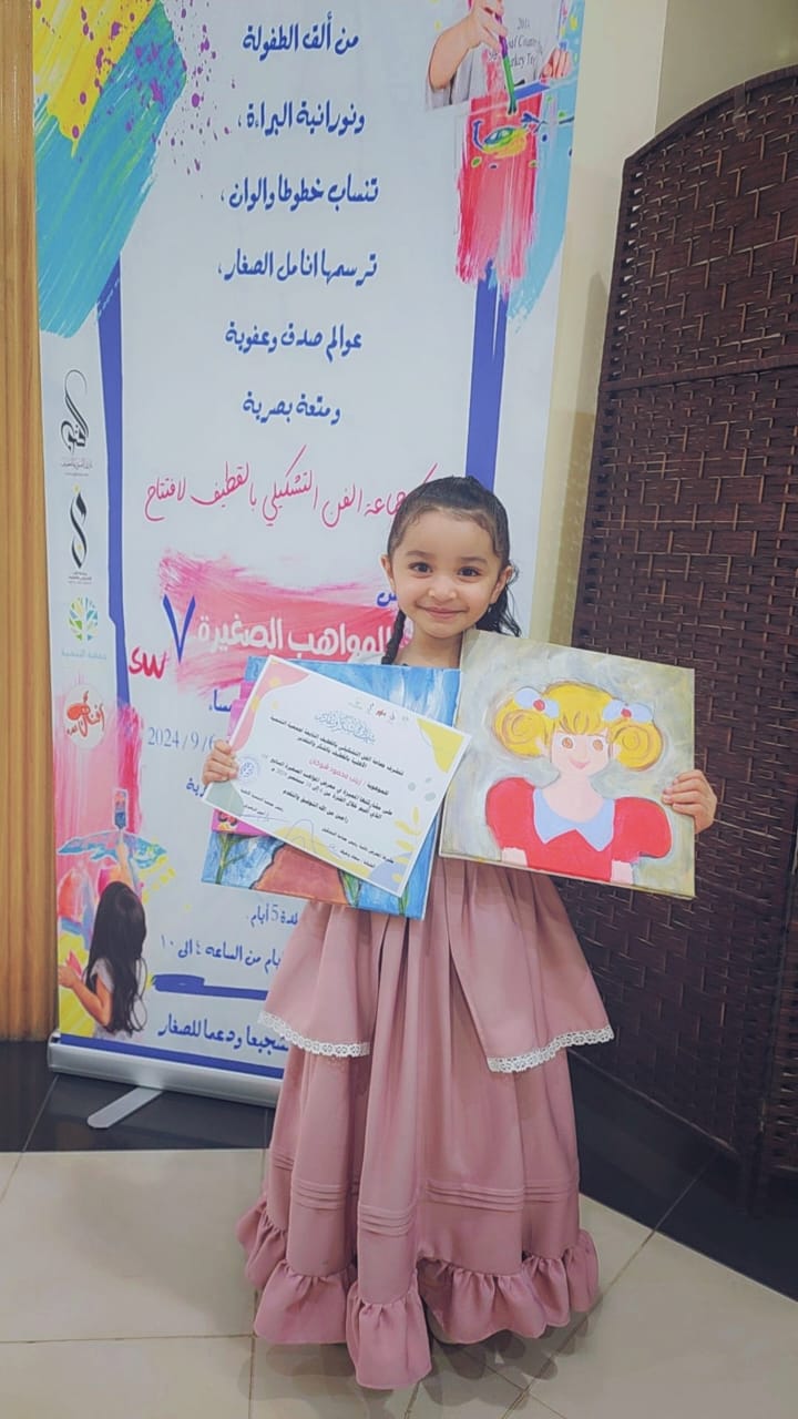 وشاركت الطفلة بلوحتين كانفس، رسمتها بالألوان الغنية، والصريحة، حيث نفذت العمل عليهما باستخدام ألوان الأكريليك.