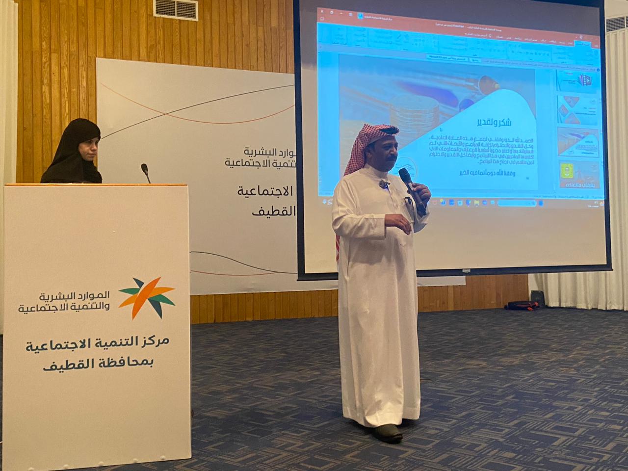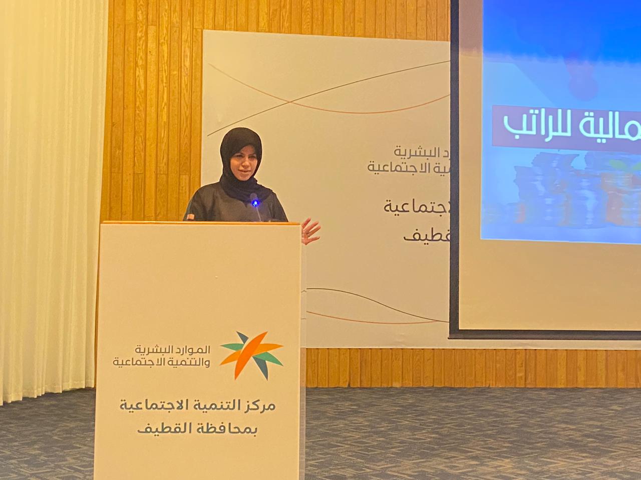 جاء ذلك في ورشة العمل "التخطيط والبرمجة المالية للراتب" التي قدمها الحربي، يوم الخميس 28 ربيع الآخر 1446هـ، والتي نظمها مركز التنمية الاجتماعية بمحافظة القطيف، احتفاءً باليوم العالمي للادخار، على مسرح المركز، بحضور مدير مركز بركات الصلبوخ، ومساعدته فاطمة اليوسف، وعدد من منسوبي ومنسوبات مكتب وزارة الموارد البشرية والتنمية الاجتماعية، وأعضاء من الجمعيات الخيرية والتنموية.