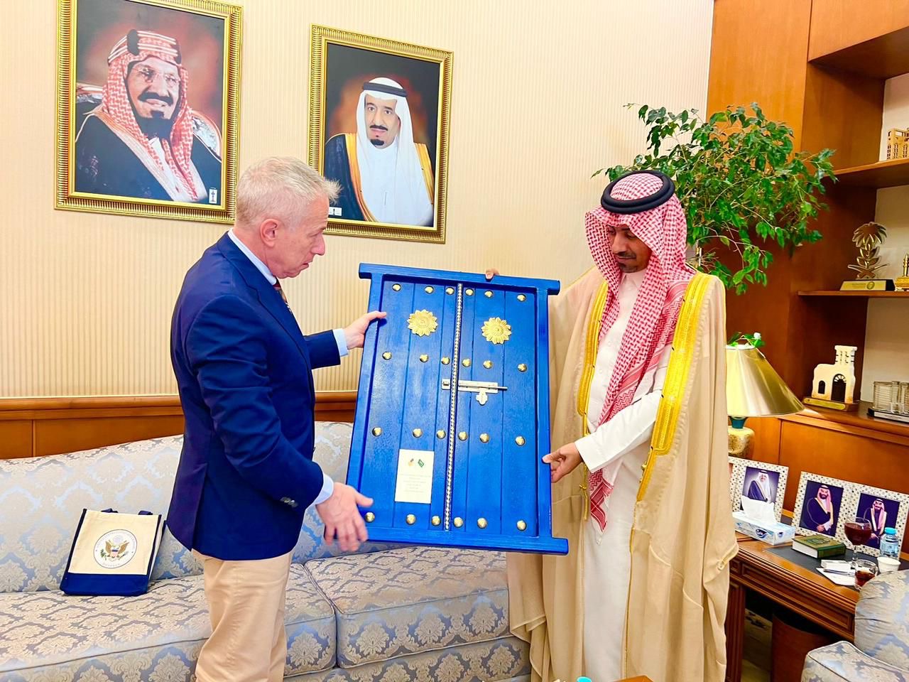 وفي ختام اللقاء، عبَّر الخريف عن امتنانه وتقديره لسعادة السفير على هذه الزيارة وقدم له هدية تذكارية من تراث المحافظة، فيما قدم السيد مايكل راتني شكره لمحافظ القطيف، على حفاوة الاستقبال.