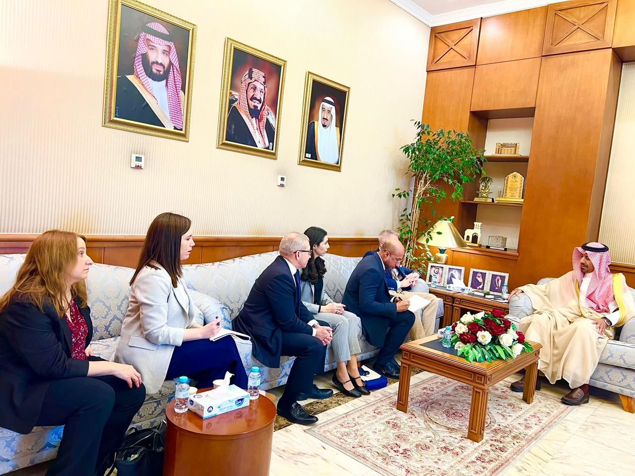 ورحَّب الخريف في بداية اللقاء بسعادة السفير والوفد المرافق له، وتبادل بعدها الجميع الأحاديث الودية.