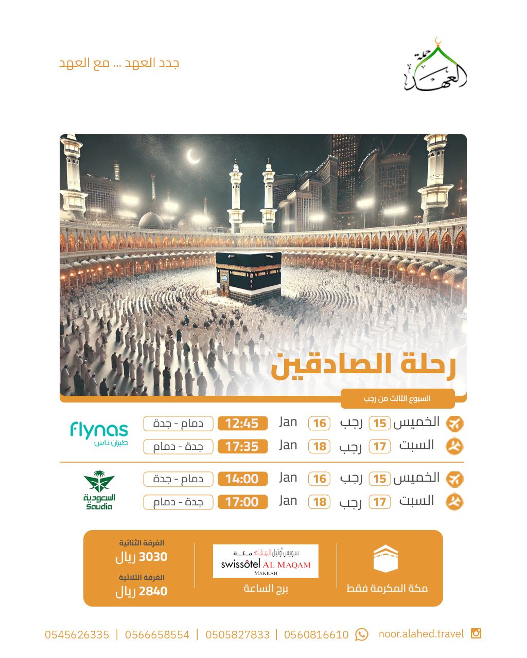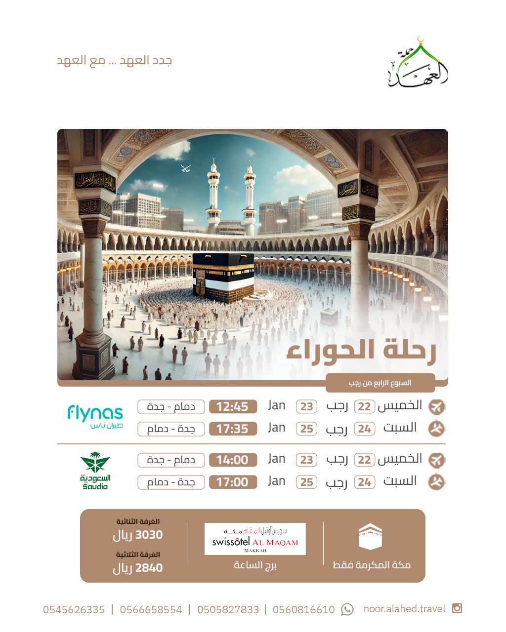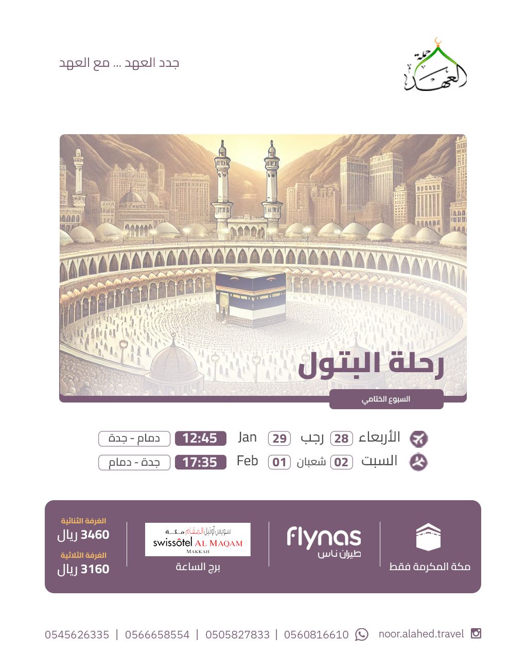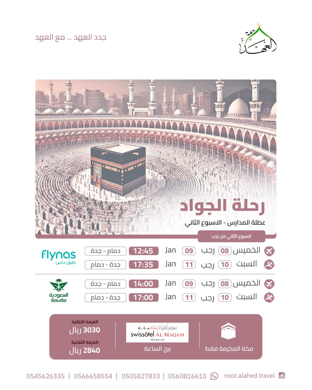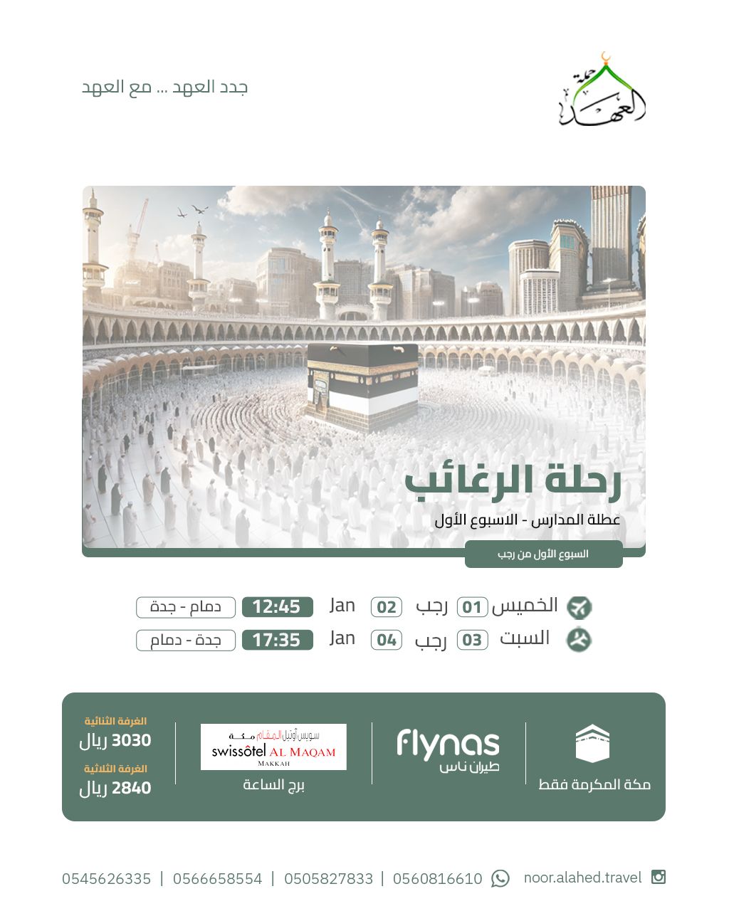 برنامجنا للعمرة الرجبية كل أسبوع من شهر رجب الأصب مع عرض خاص على الأسبوع الأول
