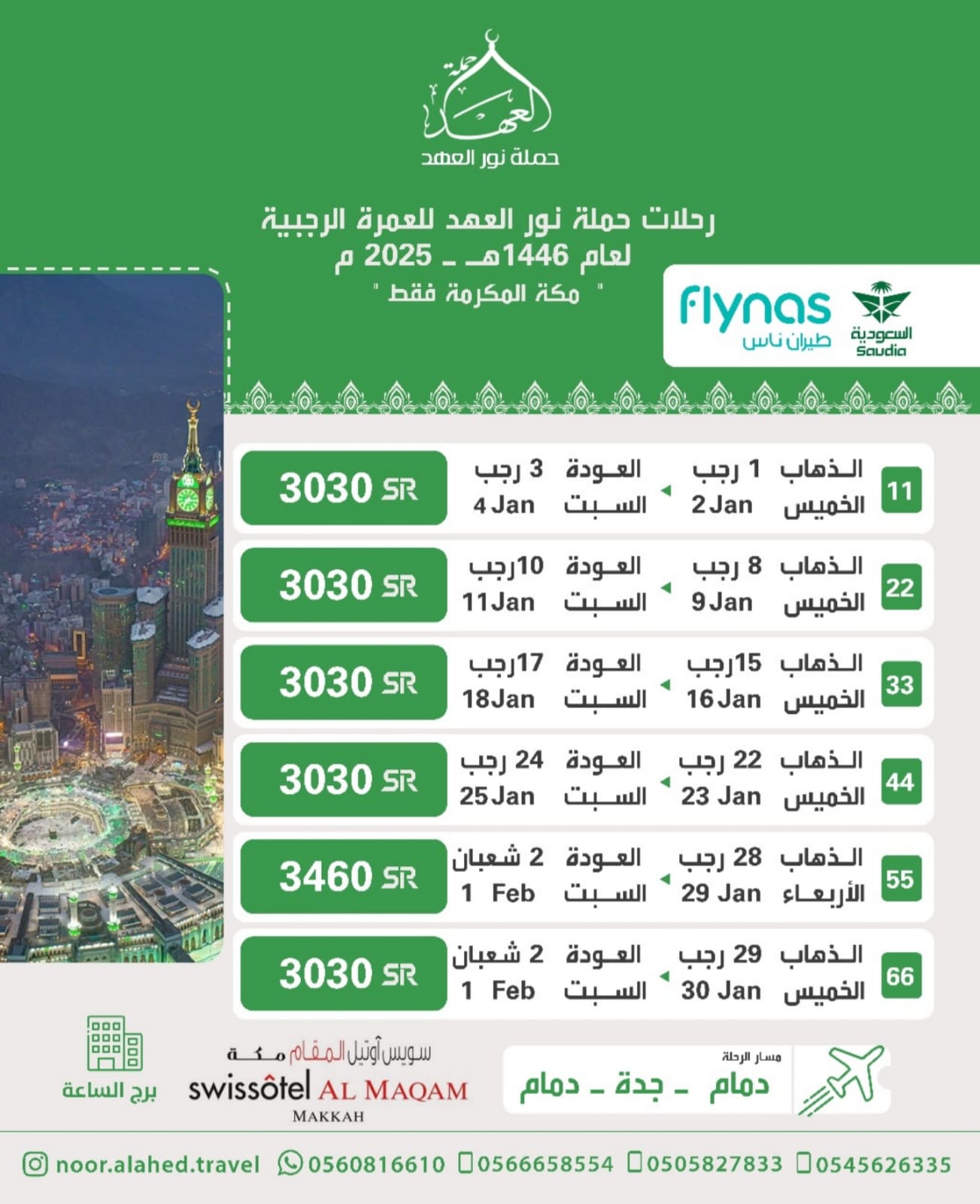 3- مسار رحلة الطيران : الدمام – جدة – الدمام مع الإحرام بالنذر