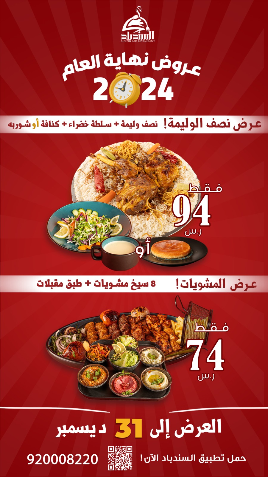 👈نصف وليمة + سلطه خضراء + كنافة أو شوربة