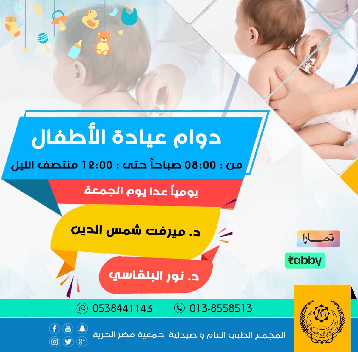 قسم المختبر (طبيب وأخصائيين) يعمل 19 ساعة من الساعة 7 صباحاً حتى 2 فجراً ويوم الجمعة من 9 صباحاً حتى 12 منتصف الليل