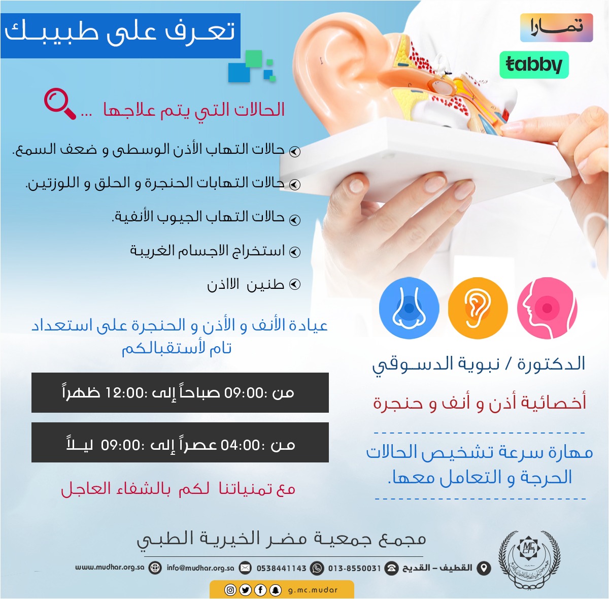 عيادة الأنف والأذن والحنجرة (طبيبة)